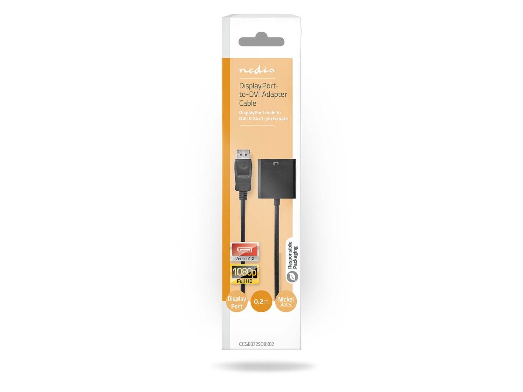 Nedis® propojovací kabel s konektory zástrčka DisplayPort - zásuvka DVI-D 24+1 pin. Kompatibilní s rozhraním DisplayPort 1.2 pro rozlišení 1920 x 1080. Pomocí tohoto kabelu lze převést signál z DisplayPort na signál DVI-D. Délka 0.2 m.