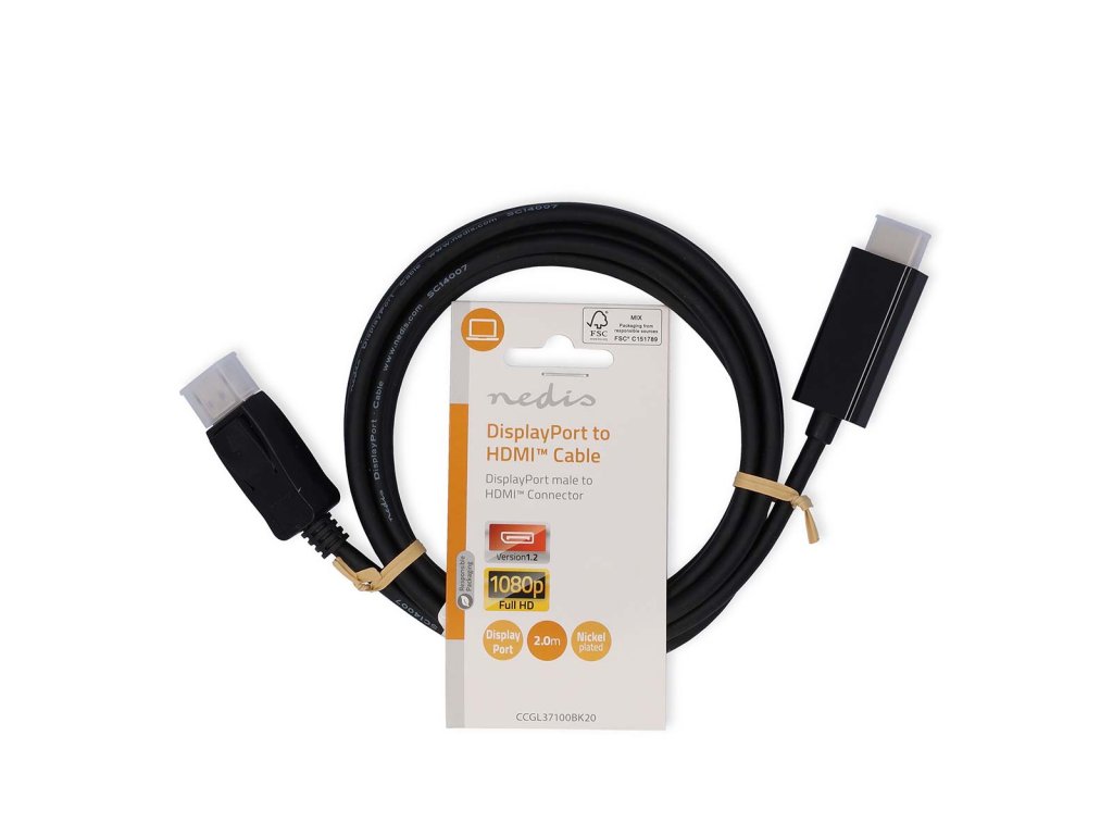 Nedis propojovací kabel zástrčka DisplayPort - zástrčka HDMI, 2 m, černá (CCGL37100BK20)