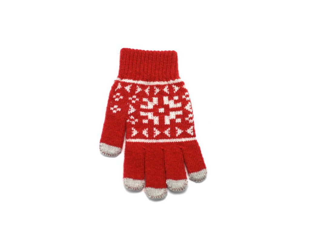Rukavice iTECH s elektrovodivými konečky 3683 (5 prstů) velikost L červené, vzor Claus