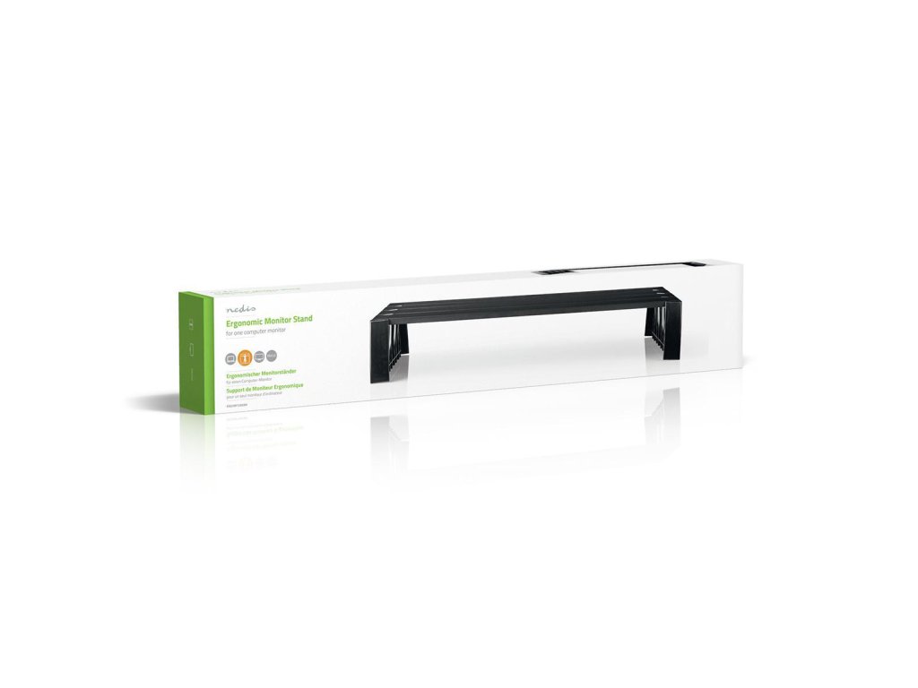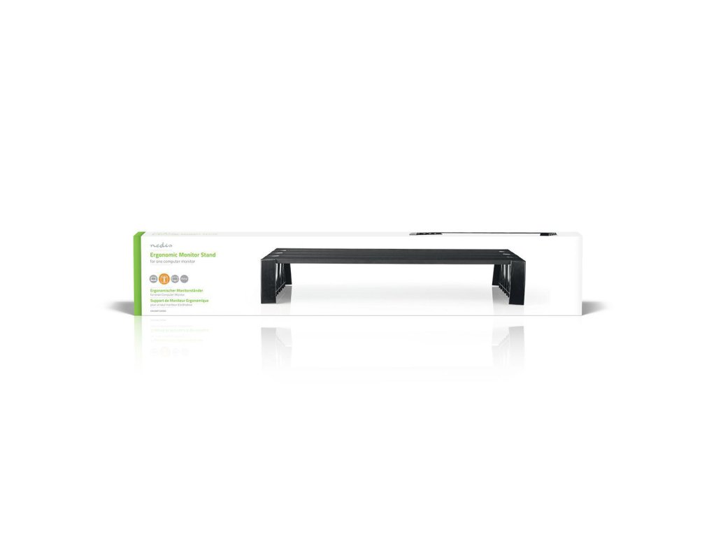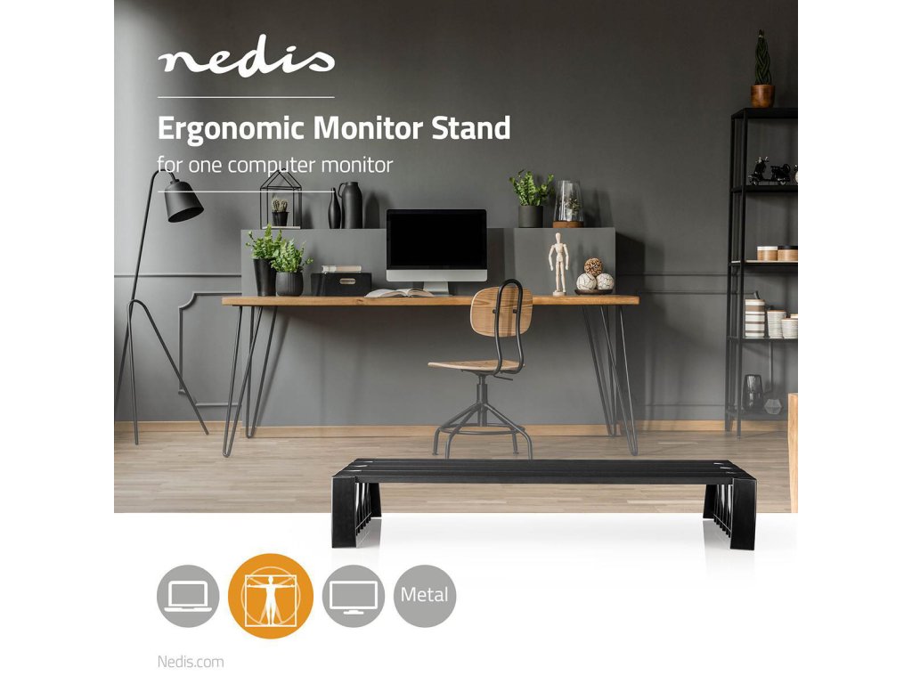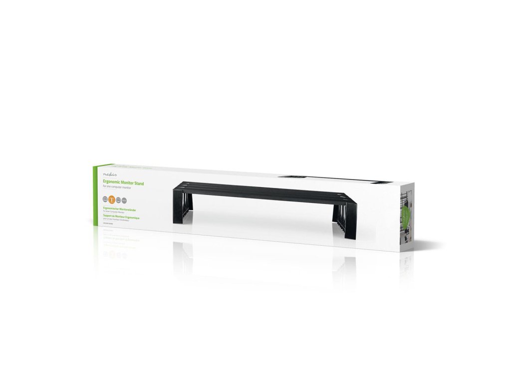 Nedis® ergonomický podstavec pod monitor zvedá obrazovku na úroveň očí, čímž zmírňuje svalové napětí ramen a šíje. Je vyrobený ze slitiny hliníku a plastu pro maximální pevnost a díky svému praktickému designu ušetří místo na vašem pracovním stole. Stojan je určen pro jeden monitor s maximální hmotností 16 kg a poskytuje prostor pro uložení klávesnice.