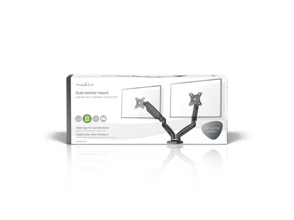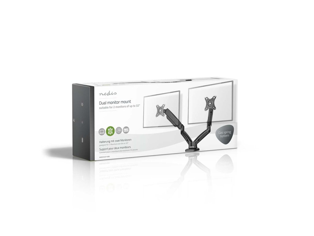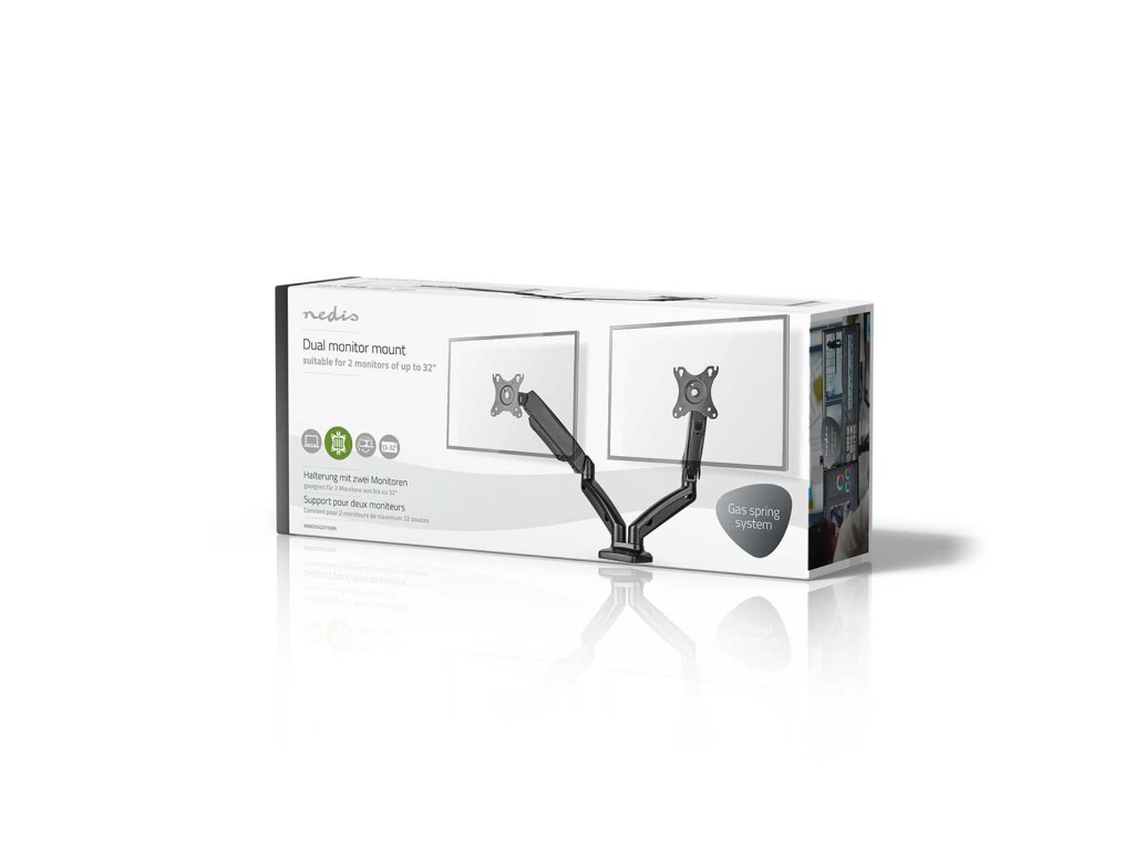 Nedis MMDOSGS110BK držák 2 monitorů s plynovou vzpěrou, full motion 15 - 32", 8 kg max.
