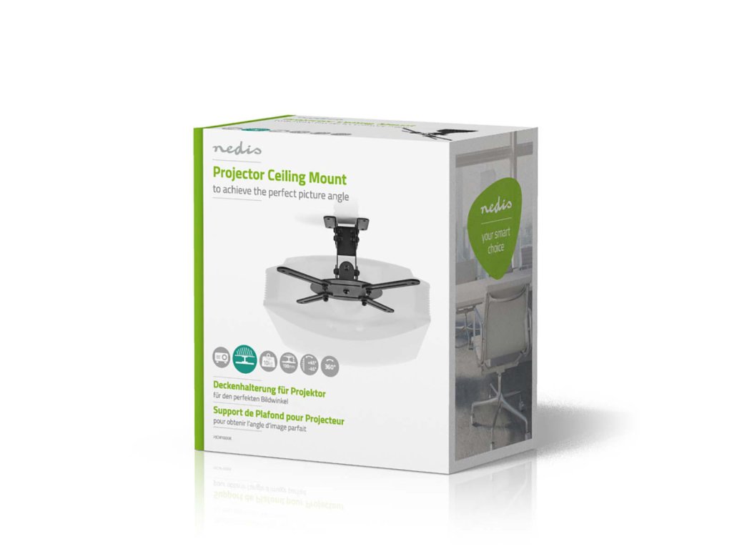 Držák Nedis® je vhodný pro instalaci projektoru na strop a poskytuje flexibilní možnosti naklápění a otáčení. Dodáván s návodem a veškerým materiálem potřebným pro rychlou a snadnou instalaci.