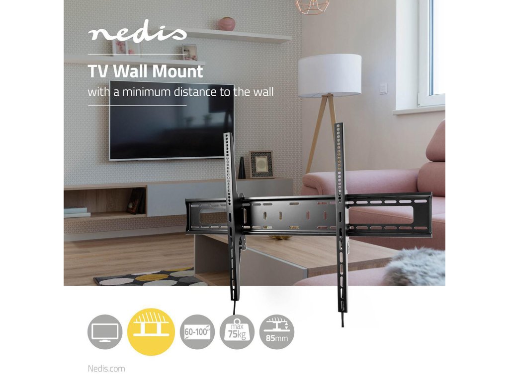Naklápěcí extra velký TV držák Nedis® umožňuje připevnit TV ke stěně ve vzdálenosti 85 mm. Dodáván s veškerým materiálem potřebným pro rychlou a snadnou instalaci, balení obsahuje vodováhu, díky které namontujete držák vodorovně.