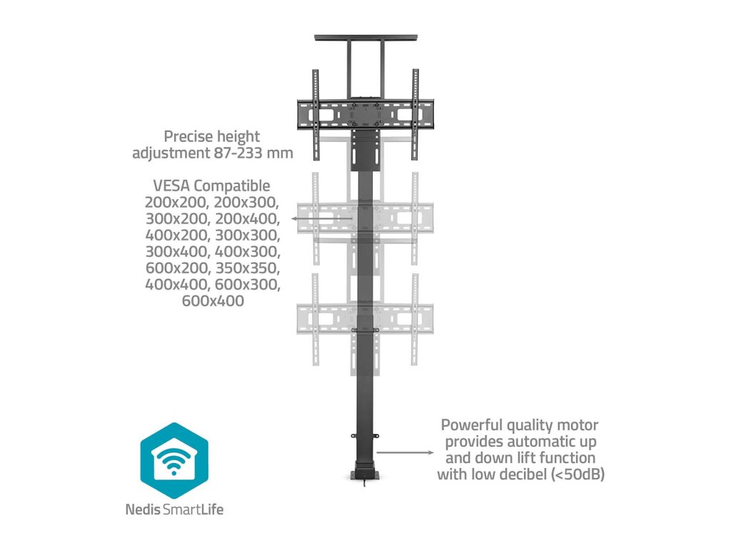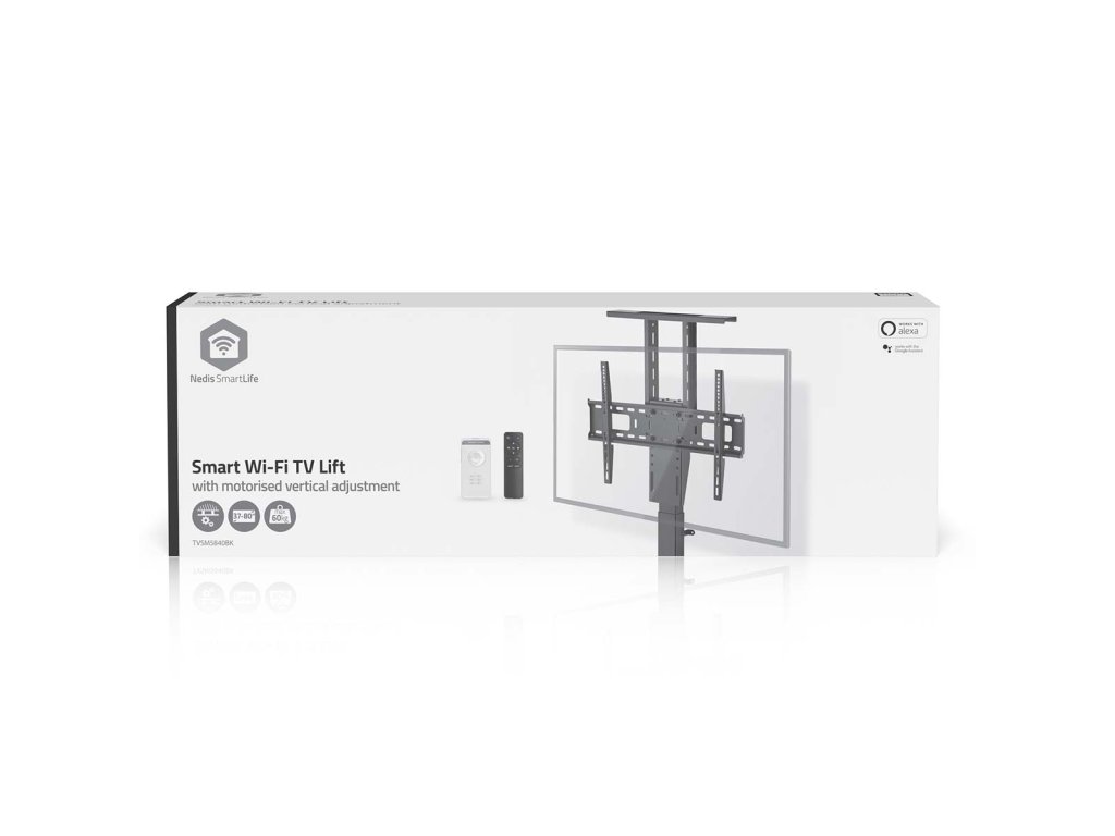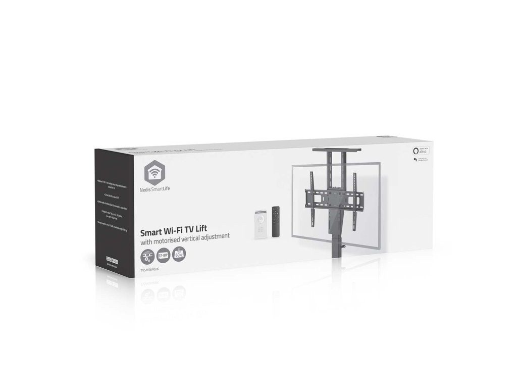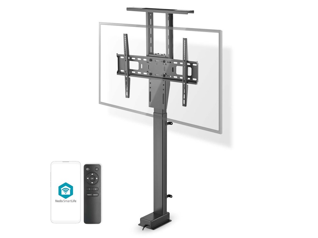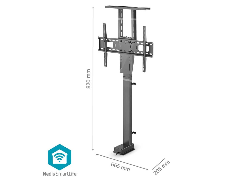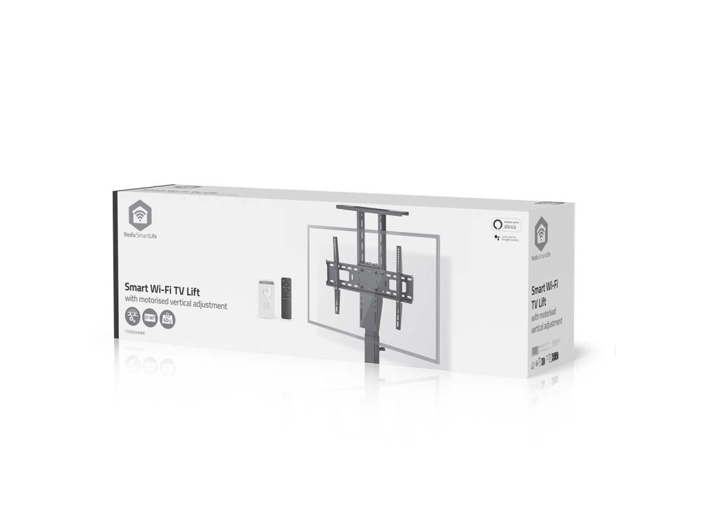 Nedis SmartLife Wi-Fi motorizovaný držák televizoru je navržen tak, aby ukryl televizory s plochou obrazovkou od 37" do 80" ve skříních. Horní panel skříně lze namontovat na stojan. To šetří místo a pomáhá zachovat minimalistický vzhled.