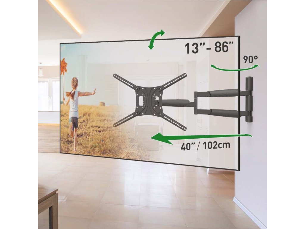 • Extrémně výsuvný, umožňuje otočení o 90° pro televizory až do velikosti 86"