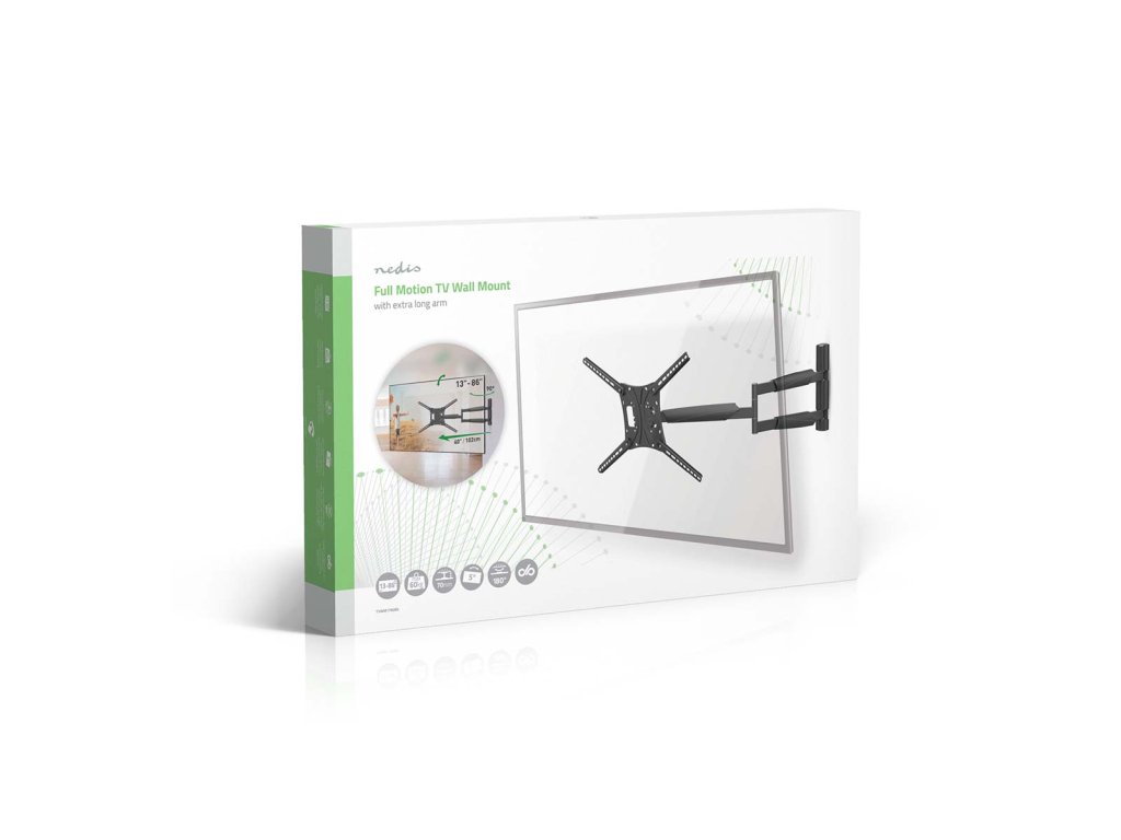 Nedis Full Motion TV nástěnný držák s dlouhým ramenem kombinuje všestrannost s funkčností. Nejen, že jej lze použít pro standardní nástěnné instalace, ale je také vhodný pro rohové instalace, maximalizuje prostor a poskytuje bezproblémový zážitek ze sledování z jakéhokoli úhlu.