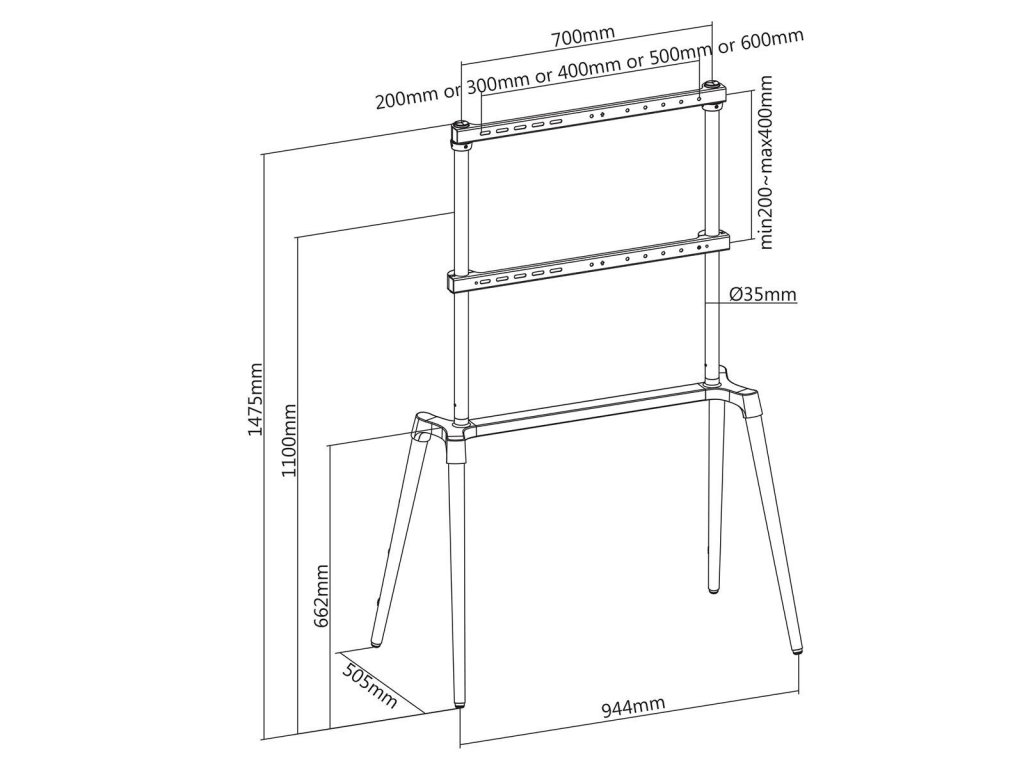 • Rozměry stojanu jsou 944 × 505 × 1475 mm