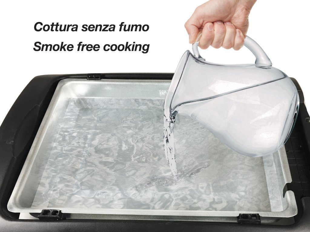 - Vyjímatelný tác na vodu pro bezkouřové grilování