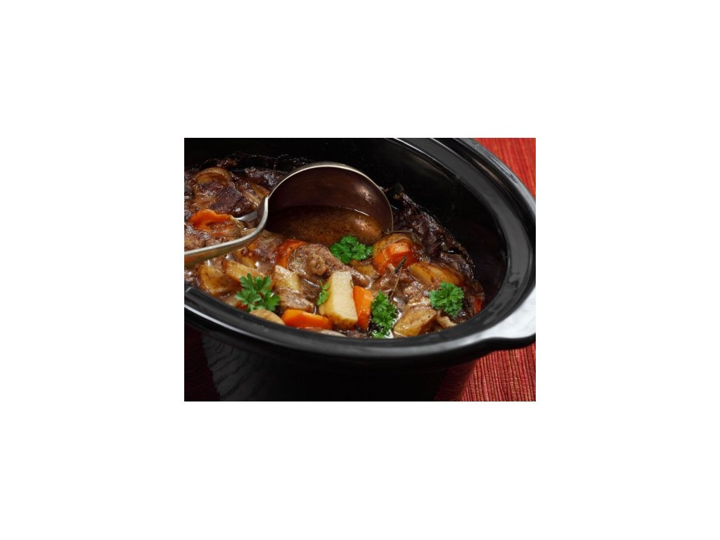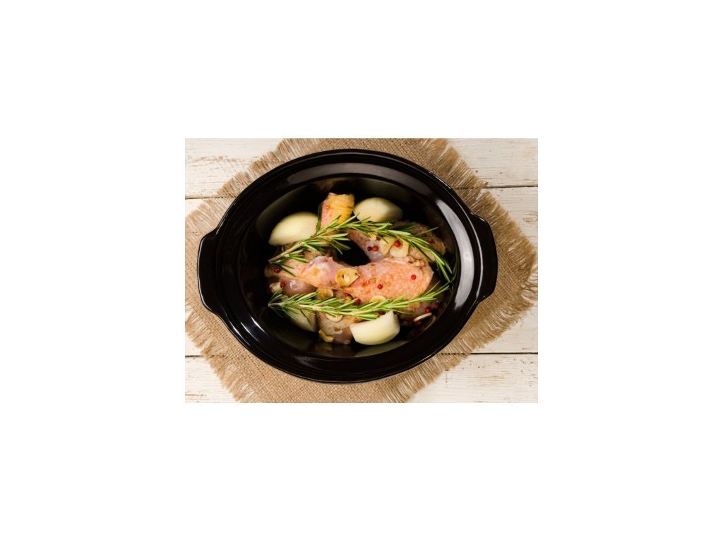 Digitální pomalý hrnec s nerezovým pláštěm, skleněnou poklicí a 4,5 litrovou kameninovou nádobou. Kamenina je materiál prověřený v kuchyních po dlouhá staletí, jedná se o neporézní keramiku s vysokou odolností a trvanlivostí. Kamenina se svou neskutečnou všestranností byla vždy oblíbená v kuchyni, vyznačuje se snadným čištěním, perfektní akumulací tepla a také tím, že nijak nekomtaminuje potraviny.