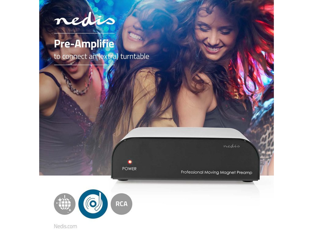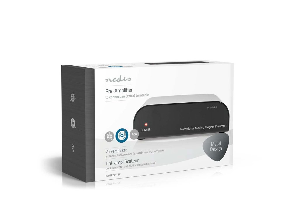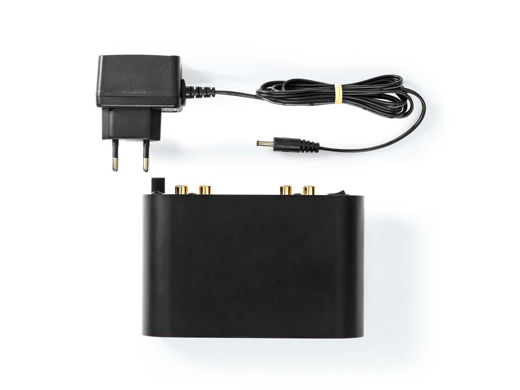 Kvalitní gramofonový předzesilovač Nedis® určený pro MM přenosky, napájený externím spínaným 12 V zdrojem. Zlacené vstupní i výstupní konektory. Kvalitní celohliníkové provedení.