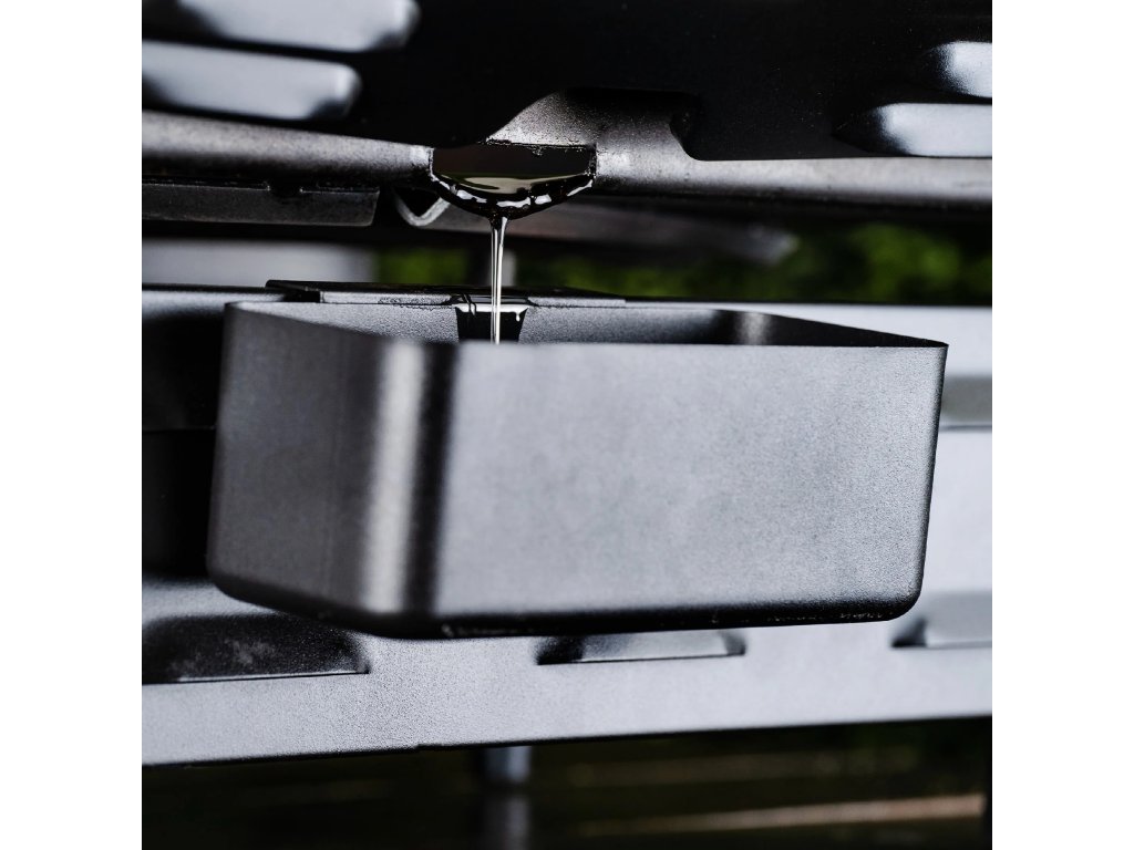 - Zadní systém pro odvod tuku: Vytlačuje tuk a zbytky jídla do zadní části roštu pro snadné čištění.