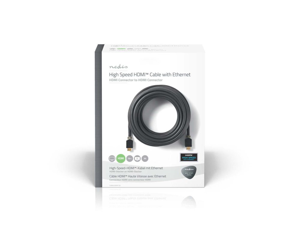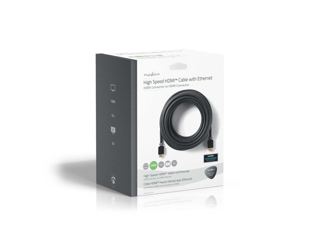 Značkový Nedis® High Speed HDMI propojovací kabel se zlacenými kontakty. HDMI Verze 1.4. Podporuje max. rozlišení videa 3840 x 2160, včetně pokročilých zobrazovacích technologií, jako jsou 3D a Deep Color. Délka 15 m.