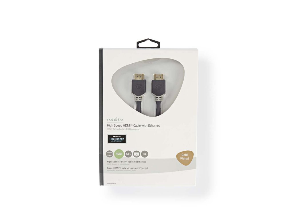 Značkový Nedis® High Speed HDMI propojovací kabel se zlacenými kontakty. HDMI Verze 1.4. Podporuje max. rozlišení videa 3840 x 2160, včetně pokročilých zobrazovacích technologií, jako jsou 3D a Deep Color. Délka 5 m.