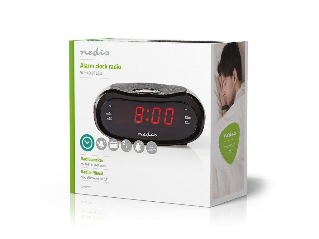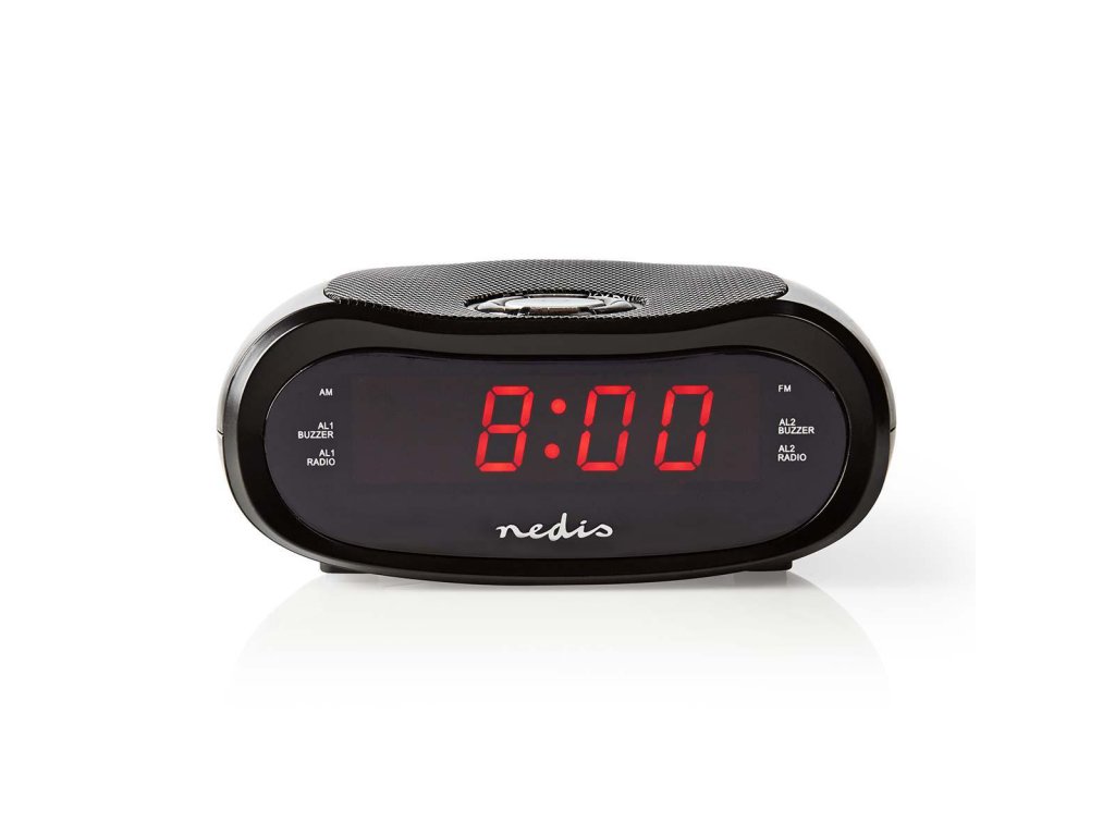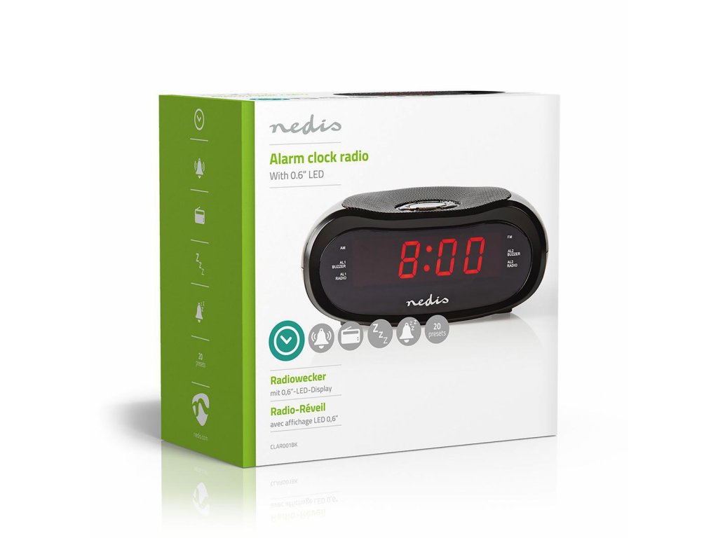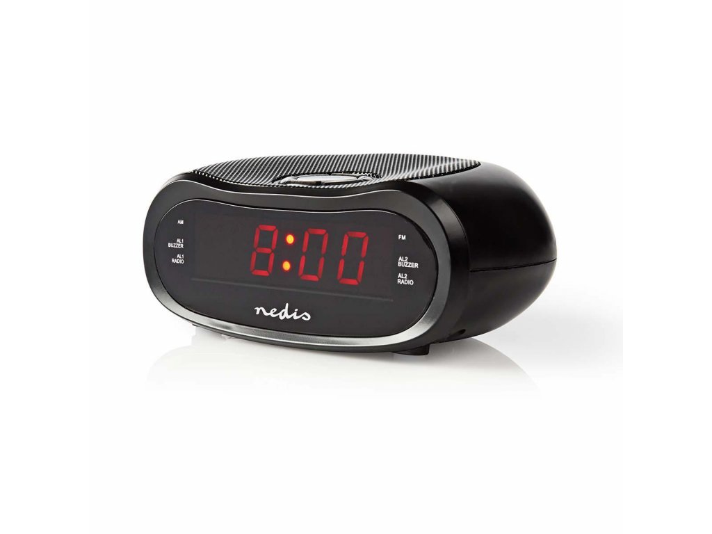 Nedis CLAR001BK budík s rádiem, 0.6" LED displej, FM rádio 20 předvoleb, duální budík