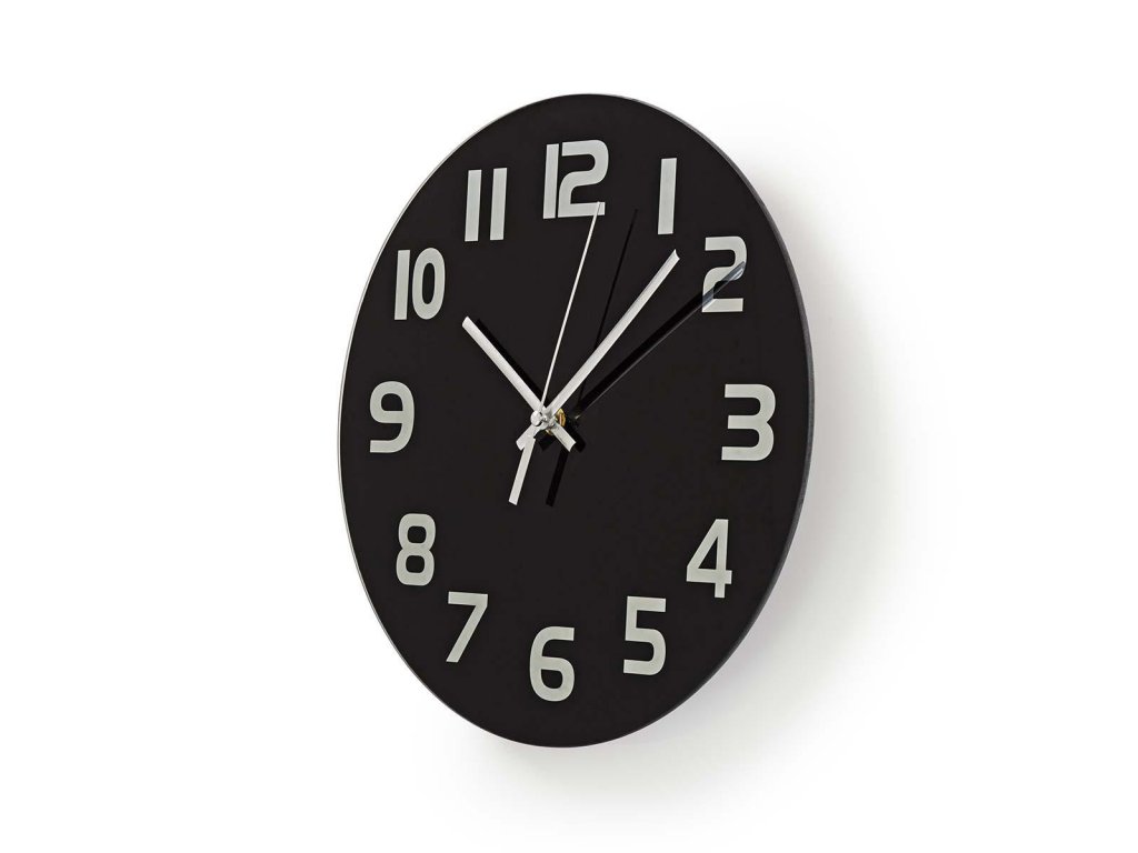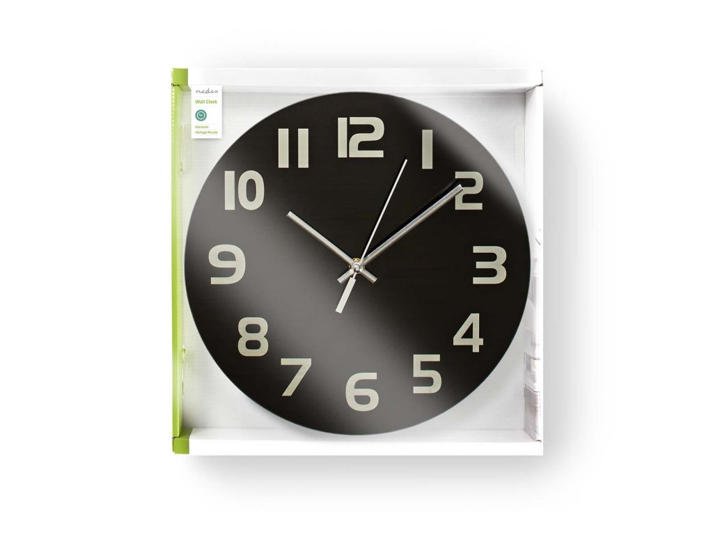 Nedis CLWA006GL30BK analogové nástěnné hodiny 30 cm černé sklo
