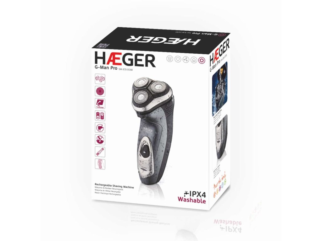 Hæger G-MAN PRO holicí strojek, který je odolný vůči vodě, má trojitou plovoucí hlavu pro dokonalou přilnavost a pohodlnost při holení, umožňuje mokré nebo suché holení.