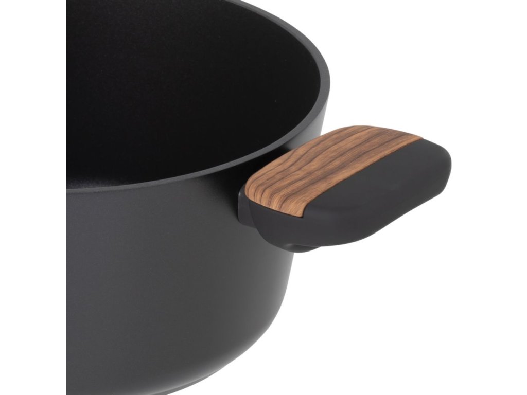 Skleněná poklice umožňuje snadné sledování průběhu vaření a je dodávána se stylovým knoflíkem na poklici ve tvaru dřeva a silikonovým okrajem se speciálním výstupem páry, který umožňuje snadné vyfouknutí přebytečné páry, aniž byste museli poklici sundávat. Vzhledem k tomu, že všichni víme, že vaření může být občas uspěchané a věci v kuchyni mohou být trochu nepředvídatelné, dali jsme si pozor, abychom přidali silikonový lem tlumící nárazy, aby se skleněná poklice nerozbila při nárazu, pokud náhodou upadnete.