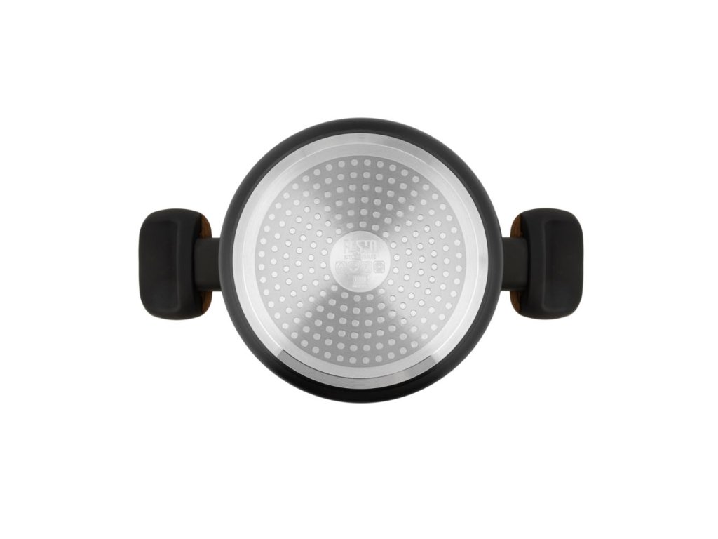Jedním z hlavních problémů velkého množství nádobí na trhu je to, že je často levně vyrobené a špatně navržené. Jedním z hlavních důsledků toho je, že tyto druhy pánví se rychle deformují pod vysokými teplotami na dlouhou dobu, což je činí zcela nepoužitelnými. Tento problém se nám podařilo obejít zavedením dna, které je vyztuženo antideformačním diskem, aby byl zajištěn povrch, který se používáním nedeformuje, bez ohledu na to, jak vysoká je teplota nebo jak dlouho trvá.