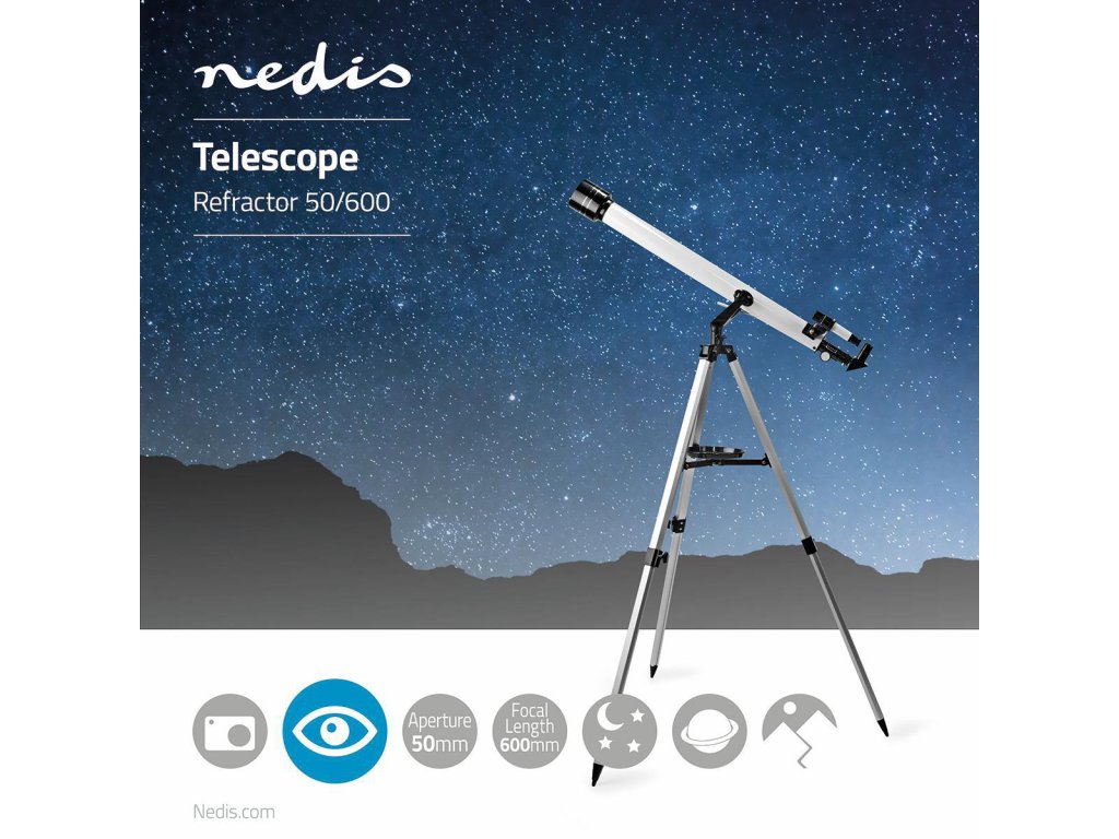Hledět teleskopem na noční oblohu - které dítě o tom nesní? Tento Nedis teleskop jim umožní udělat první krůčky v pozorování měsíce, hvězd a nejbližších planet ve sluneční soustavě.
