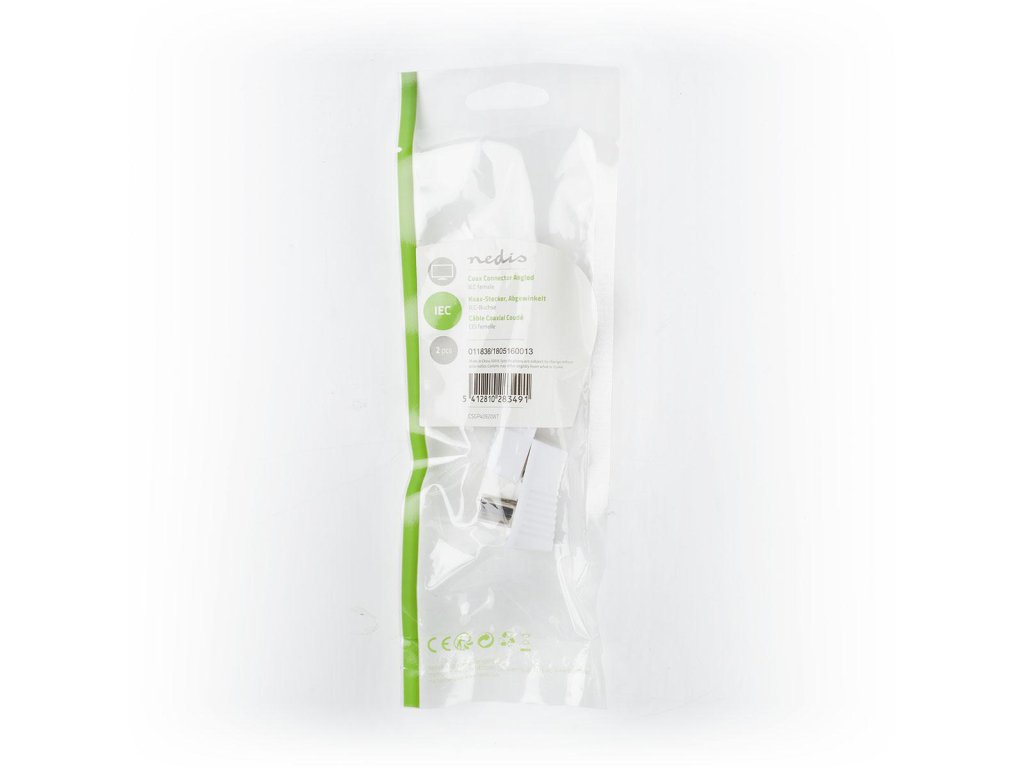 Anténní IEC konektor v provedení úhlová TV zásuvka (samice). Vhodný pro montáž na koaxiální kabel. Balení 2 ks, cena za celé balení.