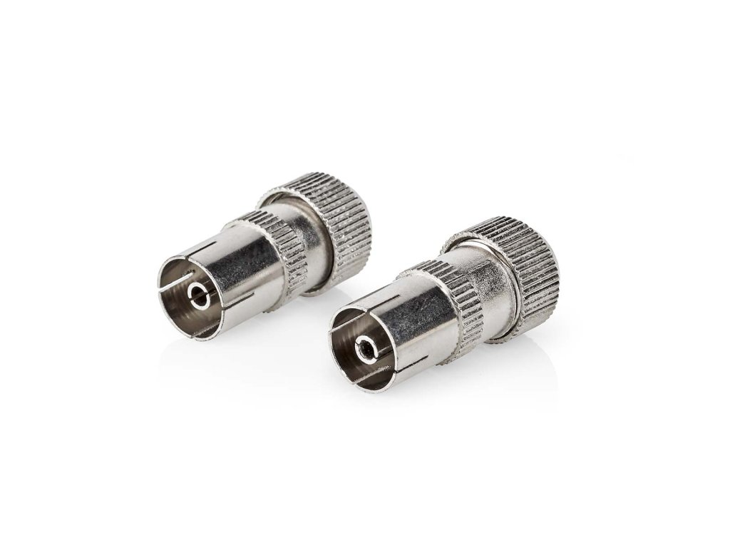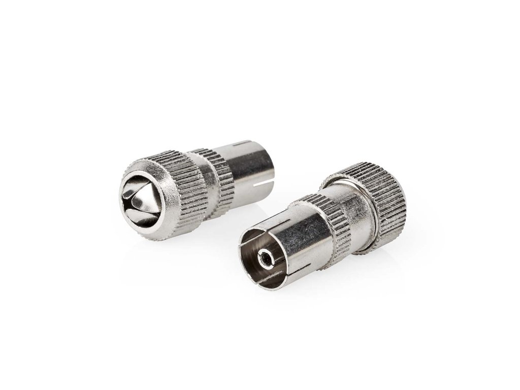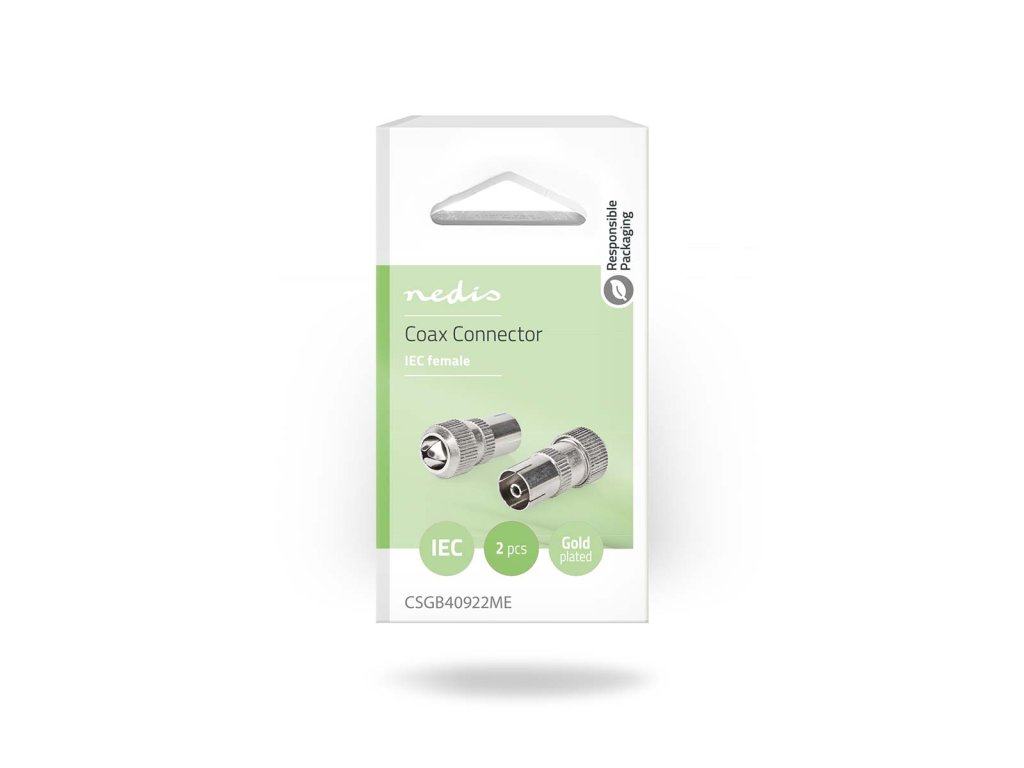 Anténní celokovový IEC konektor v provedení přímá TV zásuvka (samice). Vhodný pro montáž na koaxiální kabel. Balení 2 ks, cena za celé balení.
