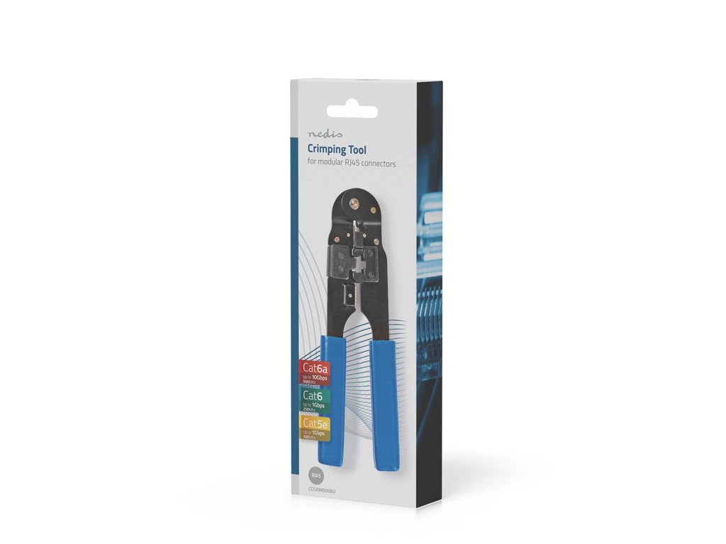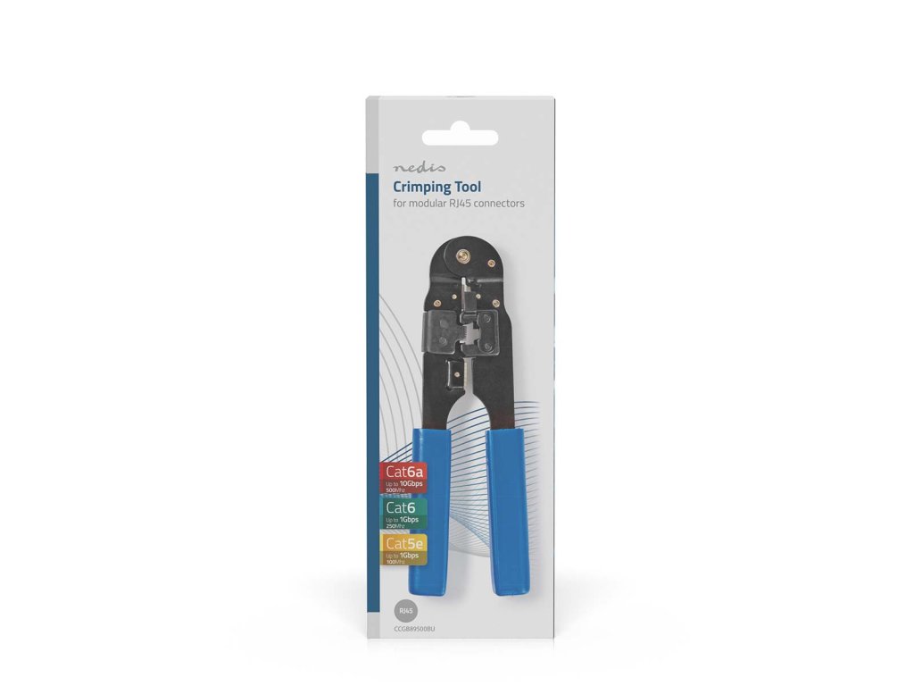 Nedis® CCGB89500BU modulární krimpovací kleště pro montáž modulárních konektorů RJ45 (8/8)*. Vhodné pro instalaceí počítačových sítí ISDN a UTP. *CAT 5 - Cat5e - Cat6.