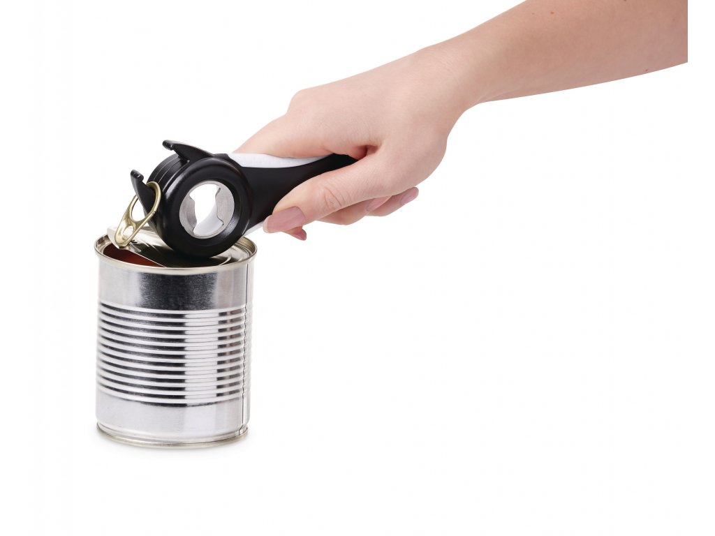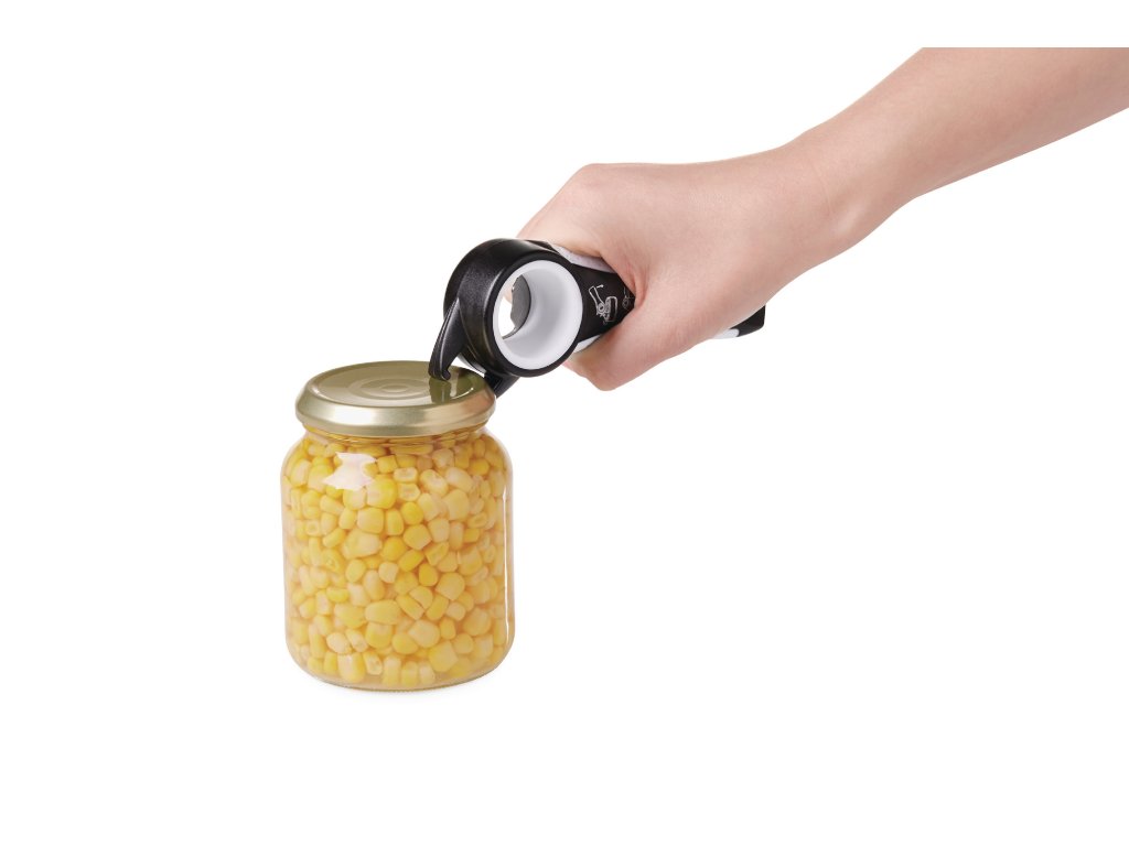 Univerzální, multifunkční otvírák 5 v 1 může být použit jednoduše a s menším úsilím na otevření plechovky, konzervy, kompotu, skleněné láhve s korunkovým uzávěrem i PET láhve. Otvírák má ergonomickou rukojeť pro pevné uchopení.