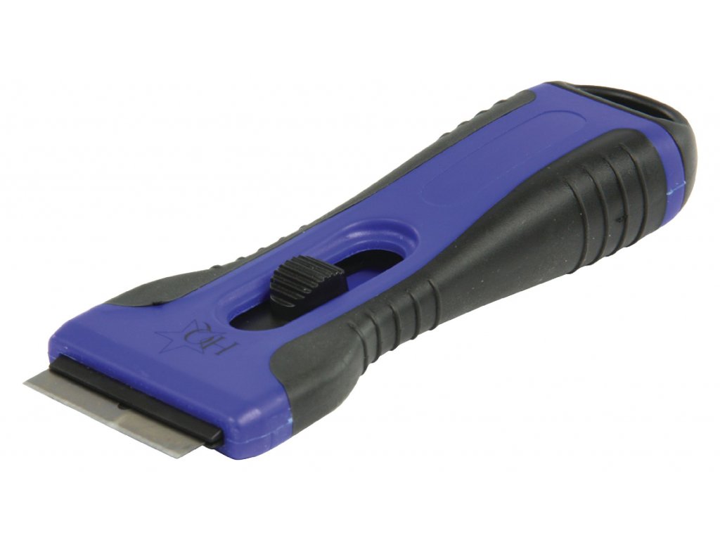 Lehká plastová škrabka určená k odstranění připáleného jídla na sklokeramických plotýnkách bez poškození jejich povrchu.