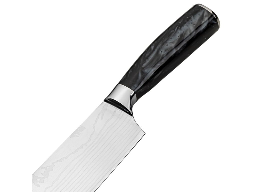 My v Resto Kitchenware věříme ve věci, které vám usnadní život. Krásná ergonomická rukojeť je vyrobena s texturou černého mramoru, která dodává noži vážnost, a má celoplošnou podložku, která bude sloužit k ochraně vašich prstů za všech okolností a zároveň vám poskytne větší pohodlí, které potřebujete, takže bude vždy potěšení a nikdy není fuška začínat na prkénku.