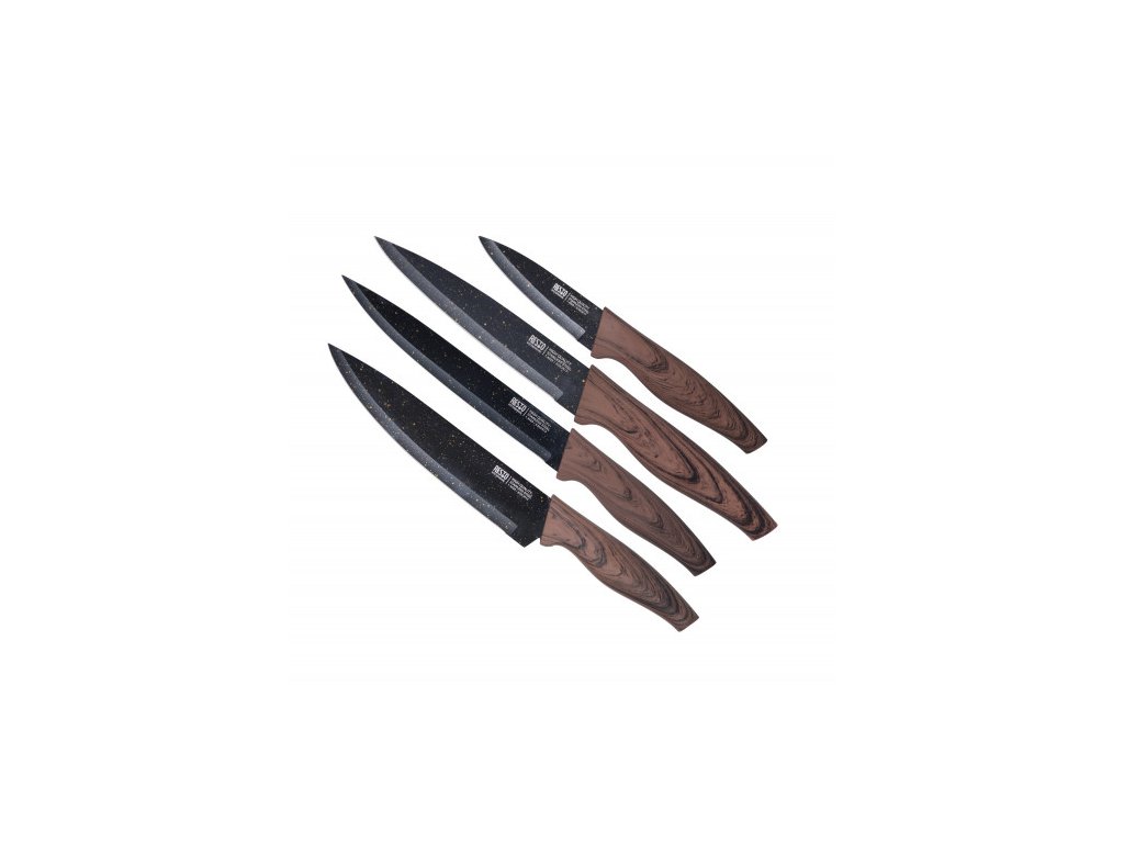 Při navrhování této sady nožů jsme se chtěli ujistit nejen o jejich funkčnosti, ale bali jsme i na jejich vzhled, dokonalé elegance jsme dosáhli díky nádhernému dřevěnému efektu na rukojetích, které jsou ergonomické a s měkkým povrchem.
