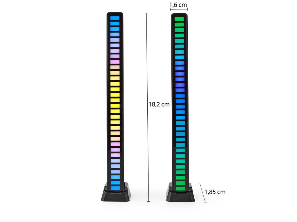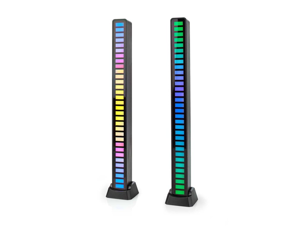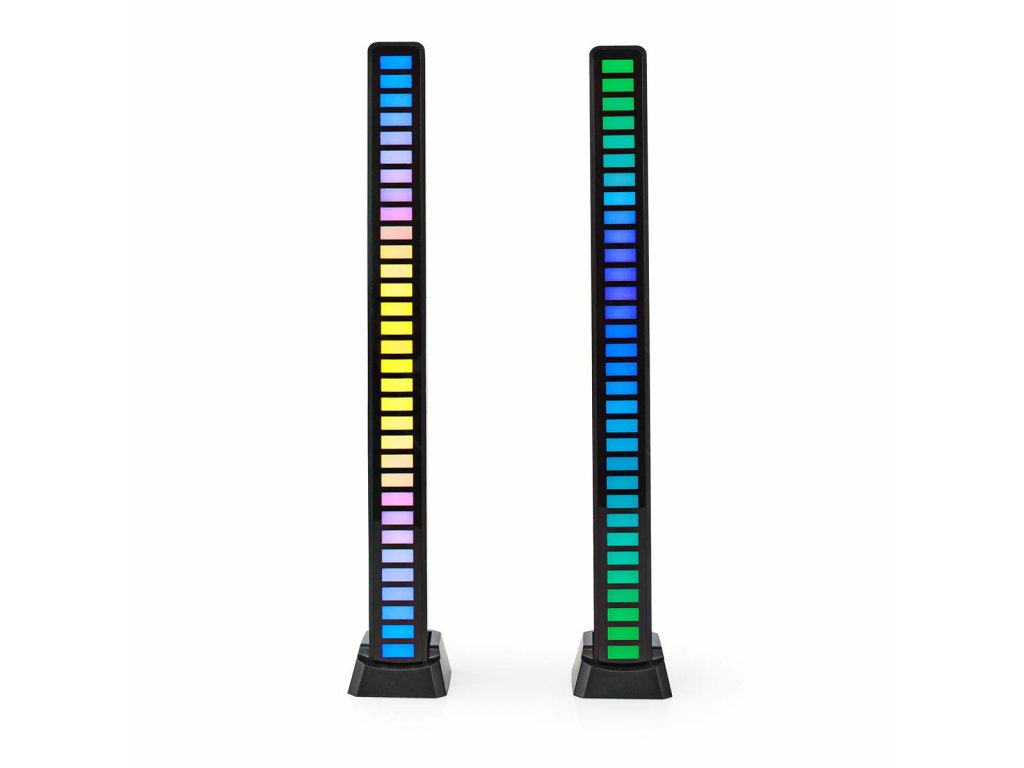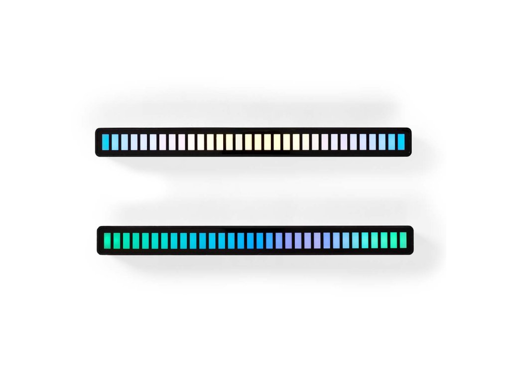 Nedis barevné herní lampičky se 32 RGB dílky pro efektní atmosféru při hraní her, nebo poslechu hudby. K dispozici je několik režimů zobrazení, které vám umožní navodit správnou atmosféru. Světla reagují na zvuky, což znamená, že různé pohyby světel budou synchronizované s hudbou či dalšími zvuky. Citlivý mikrofon zachytí i méně hlasité zvuky. Světla můžete umístit na svůj stůl, do auta nebo ven, když například pořádáte oslavu. Díky vestavěným bateriím je můžete snadno nainstalovat téměř kamkoli, dobíjení lze realizovat z USB. Balení obsahuje 2 samostatné lampičky.