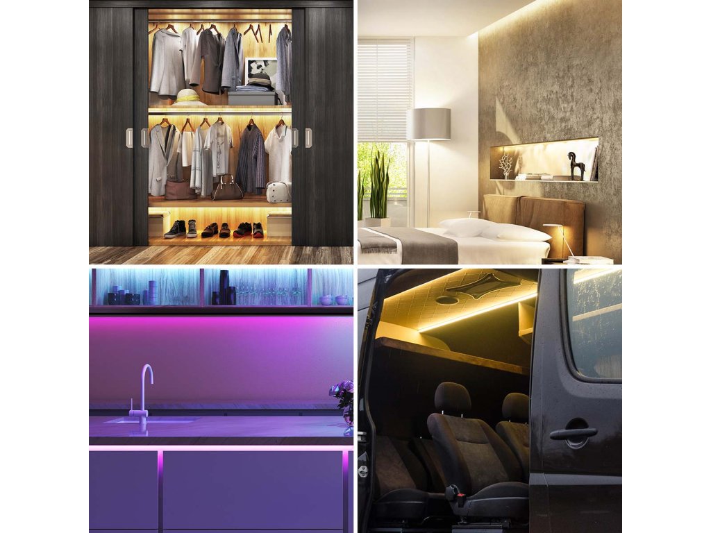 Za účelem vyšší flexibility a maximalizace možností umístění nemá tento LED pásek silikonový povrch, takže jej můžete umístit do ostrých rohů a ohnout jej do ostrých úhlů, aby se přesně vešel tam, kde jej chcete mít. Předem připravená páska 3M na zadní straně umožňuje snadné uchycení.