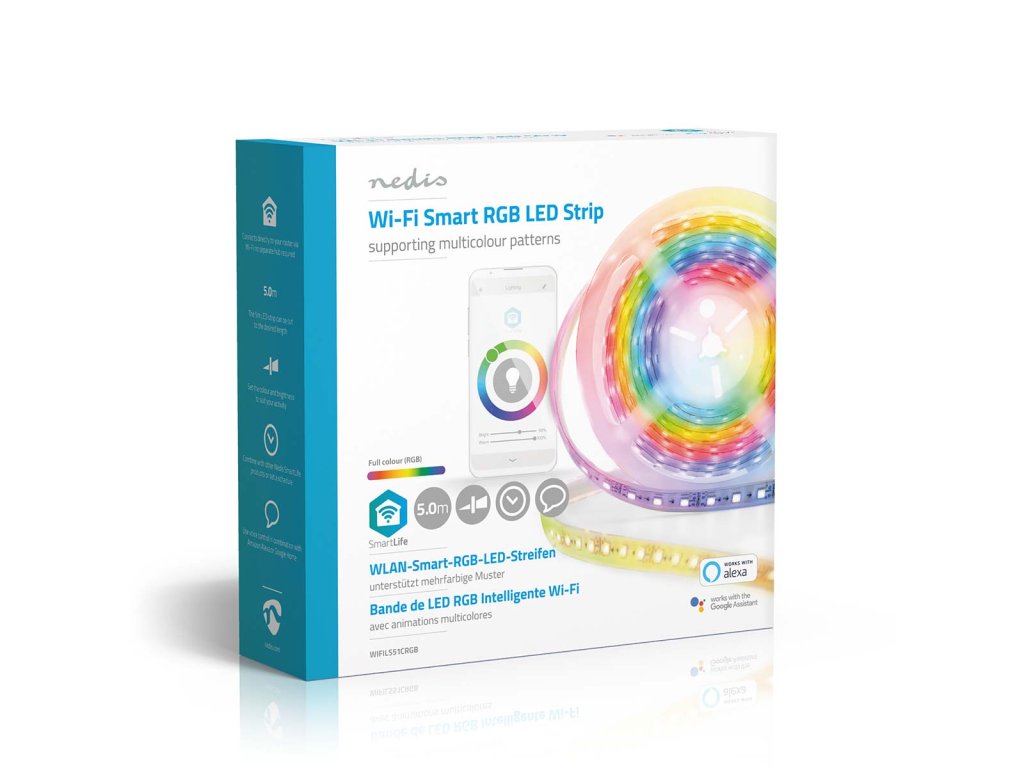Připojte LED pásek a můžete zvolit barvu světla, mnohobarevné efekty a ovládat jas pomocí aplikace Nedis® SmartLife v chytrém telefonu či tabletu nebo jednoduchými hlasovými povely prostřednictvím funkcí Siri, Amazon Alexa nebo Google Home.