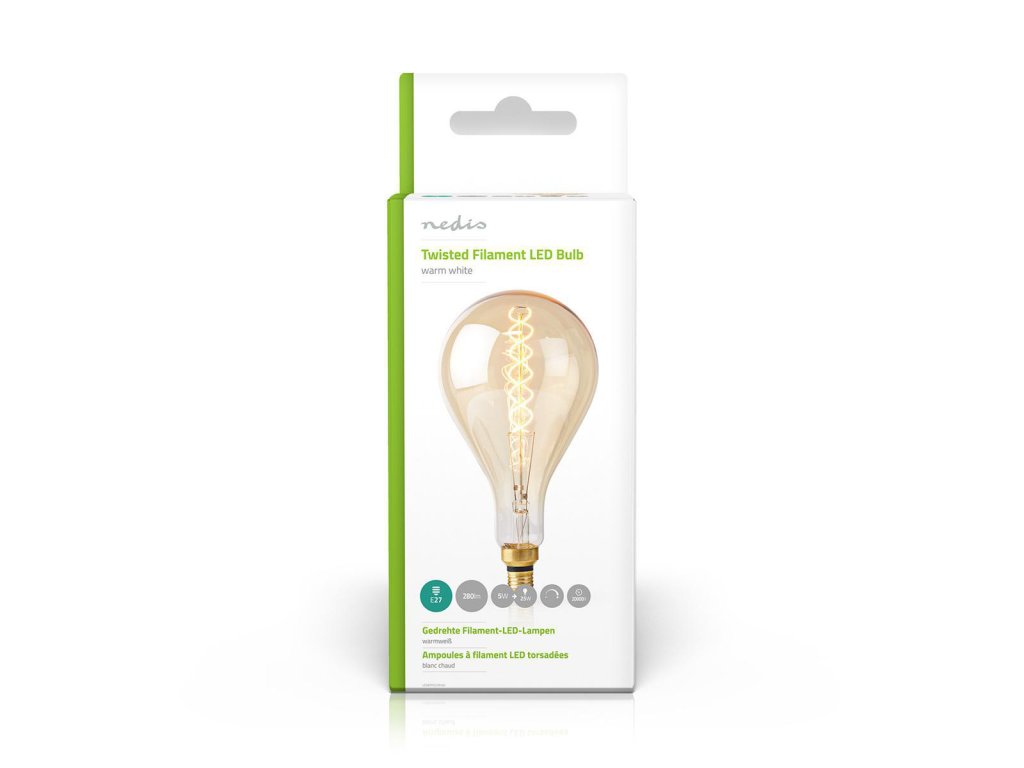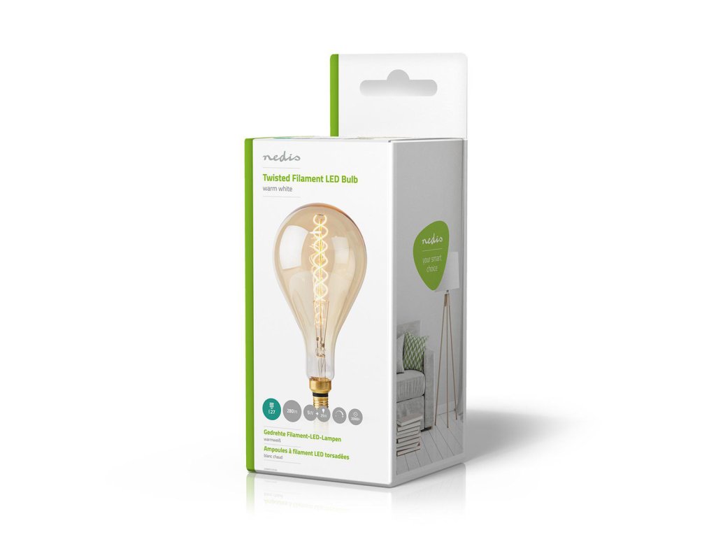Nedis® retro LED vláknová žárovka v provedení A160 s paticí E27, světelným tokem 280 lm a velice nízkou spotřebou energie 5 W. Elegantní žárovka s kroucenými LED vlákny má jantarové zabarvení skla a svítí teplým bílým světlem o barevné teplotě 2000 K.