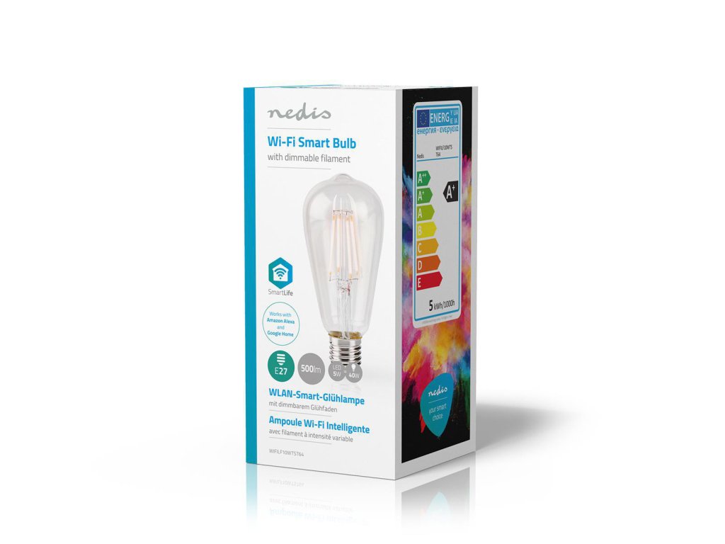 Nedis® SmartLife™ LED vláknová žárovka. Převezměte kontrolu nad svými světly pomocí této chytré LED žárovky, která se připojuje přímo k WiFi routeru a poskytuje tak v rámci Vašeho automatického domácího systému dálkové ovládání.