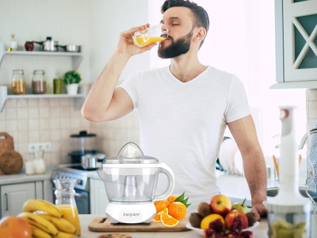 - Elektrický lis na citrusy v bílo-šedém provedení