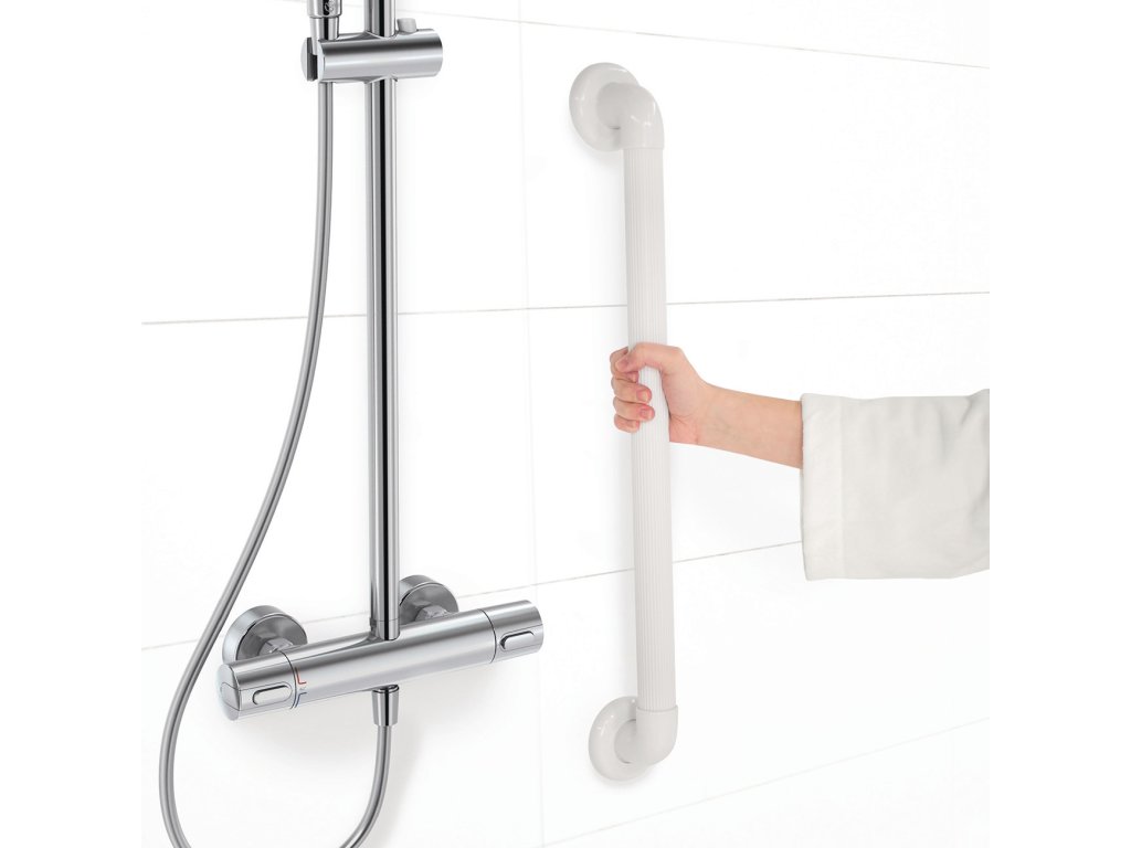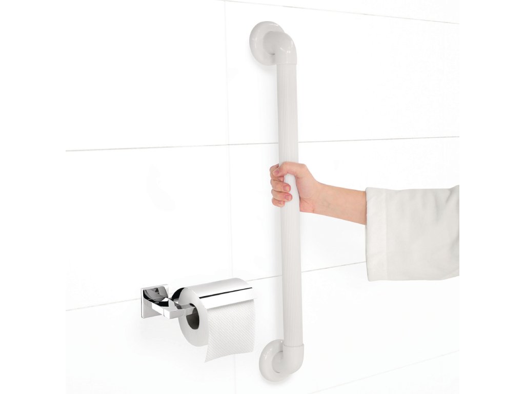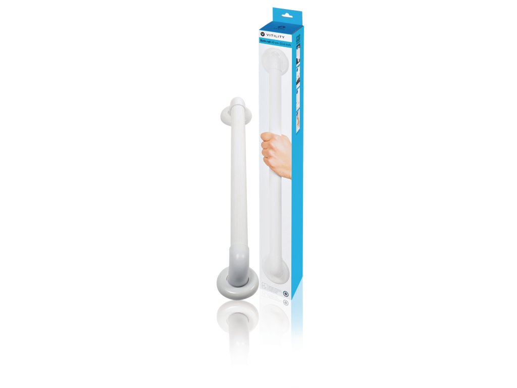 60 cm koupelnové madlo Vitility VIT-70110200 s žebrovaným povrchem pro bezpečné uchopení. Vhodné do koupelny, nebo na toaletu. Maximální zatížitelnost 120 kg. Vyrobeno z odolného plastu. Upevnění pomocí šroubů a hmoždinek. Upevňovací materiál součástí balení.