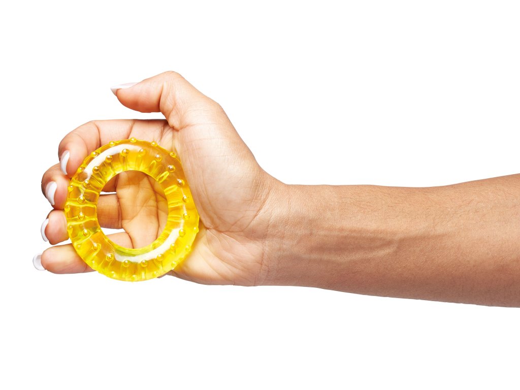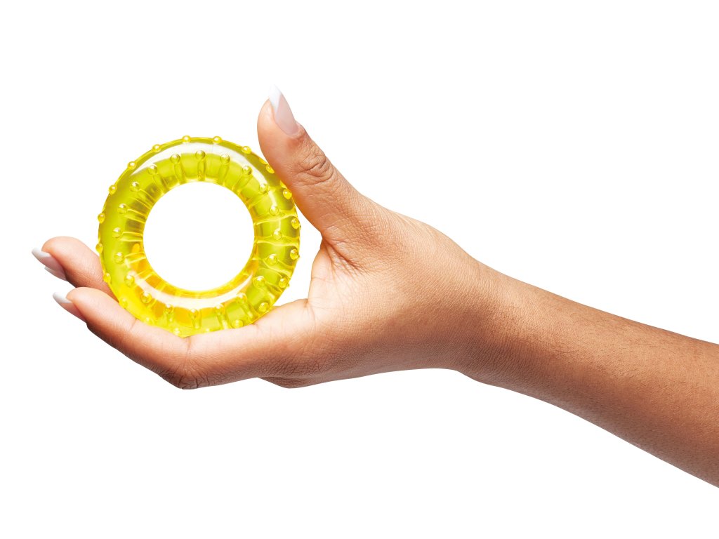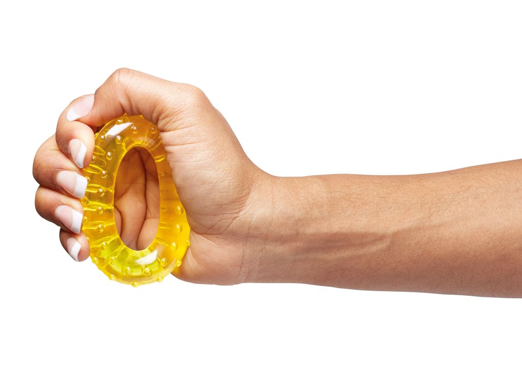 Flexibilní posilovací kroužek průměru 70 mm, vhodný k procvičování, masáži a posilování prstů a dlaní.