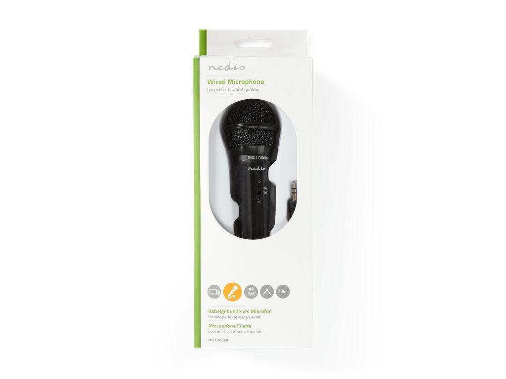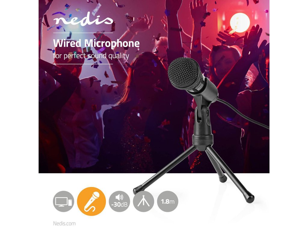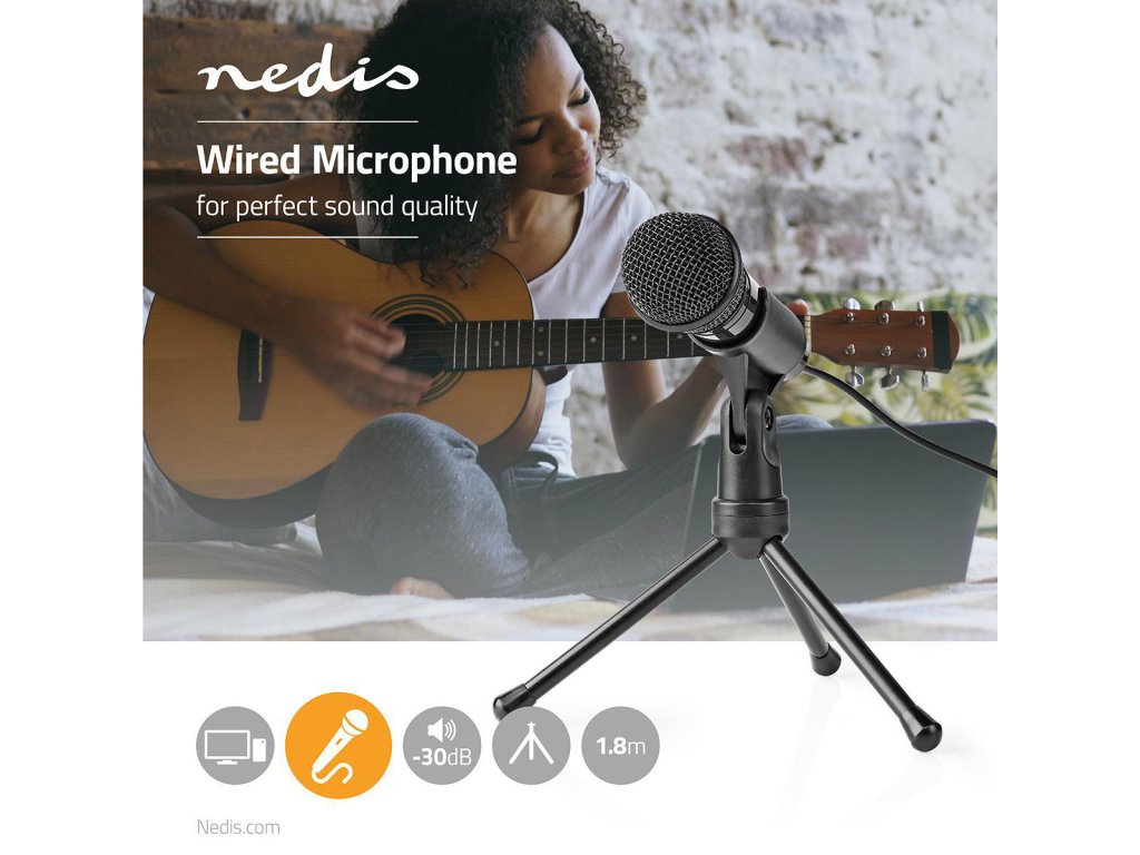 Nedis MICTJ100BK mikrofon se stojánkem, tlačítko ON/OFF, 3.5mm jack, kabel 1.8m, kovový