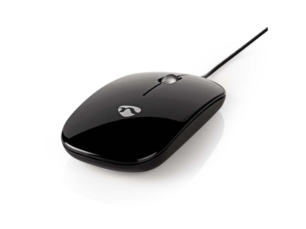 Plochá 3 tlačítková USB myš Nedis® s rozlišením 1000 dpi. Ergonomický design, vhodná pro praváky i leváky.