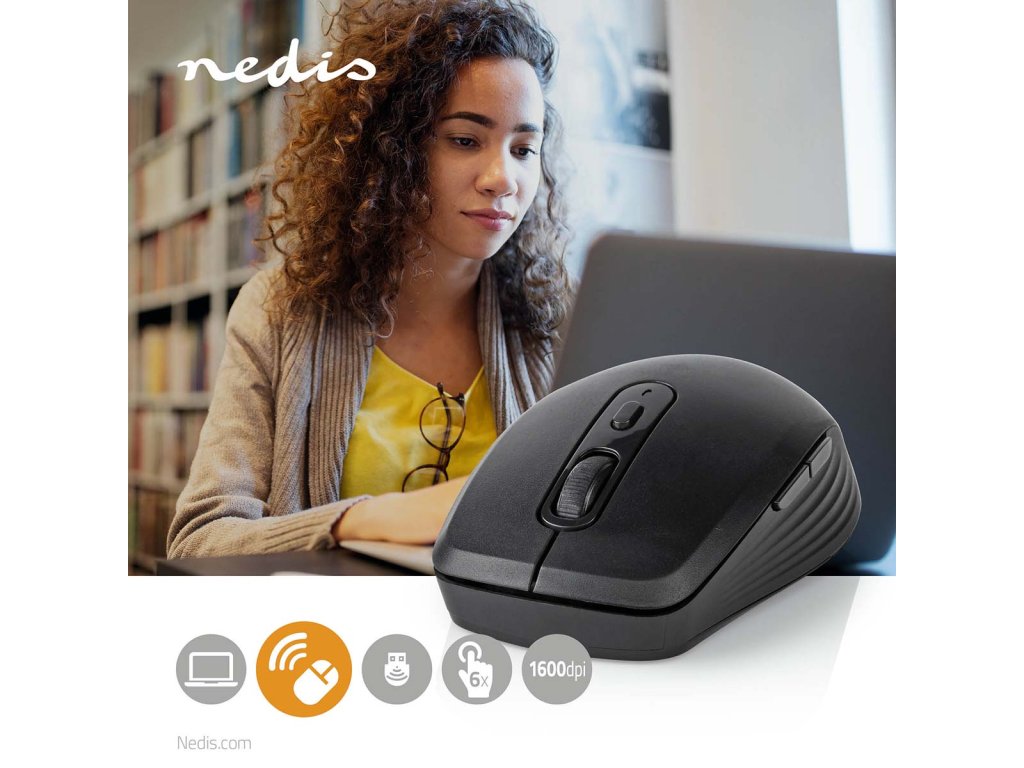 Nedis MSWS110BK bezdrátová myš, 800-1600 dpi, 6 tlačítek
