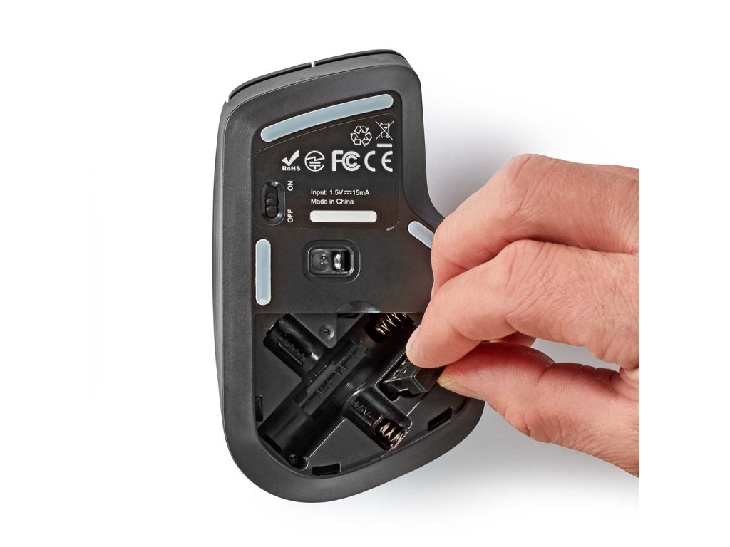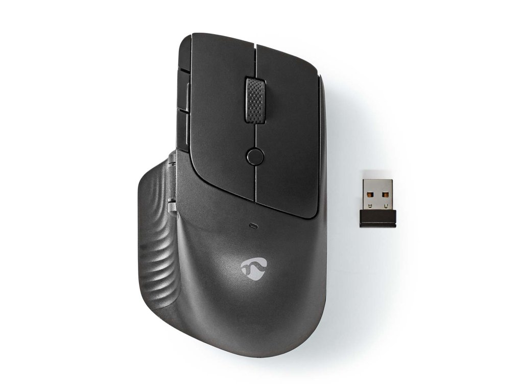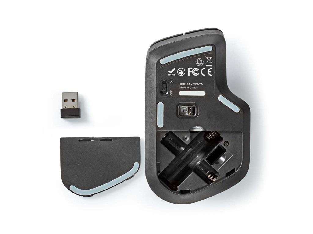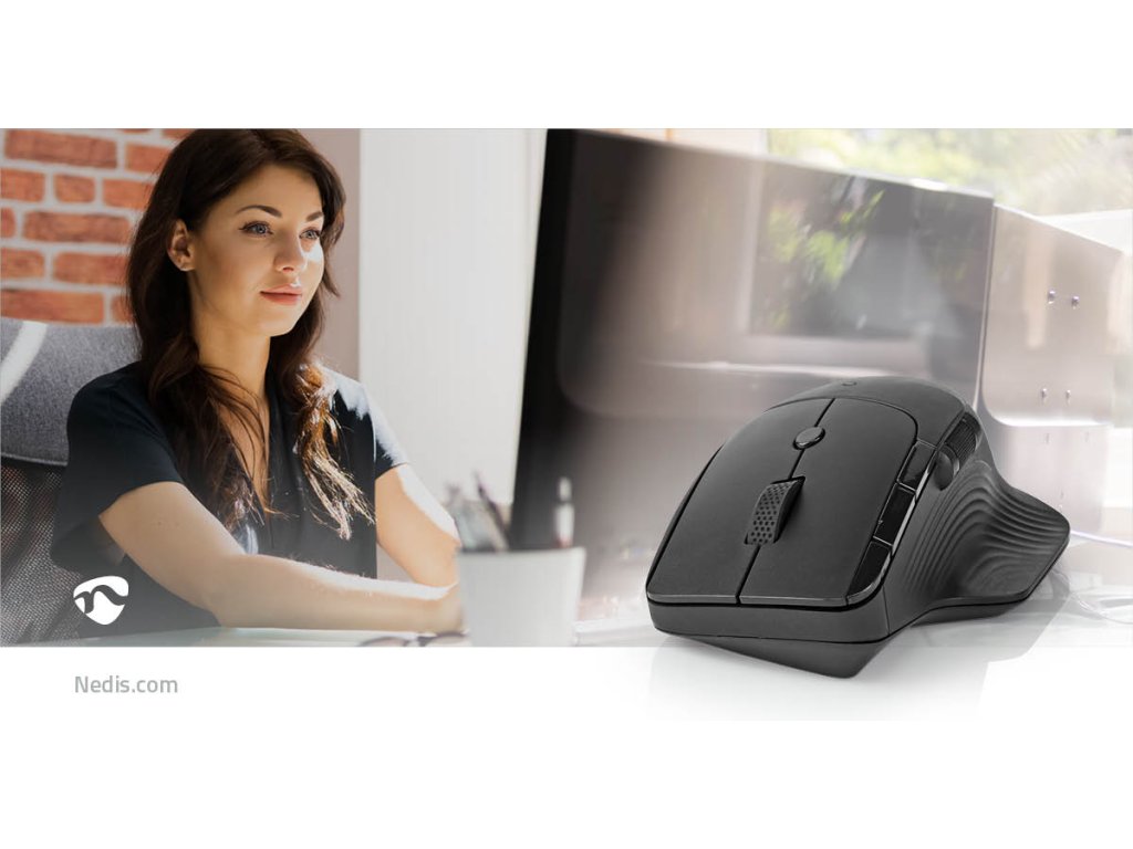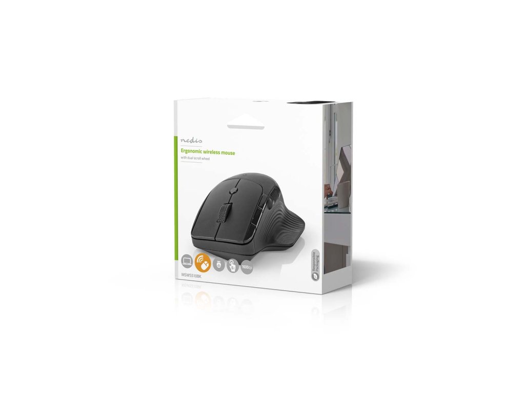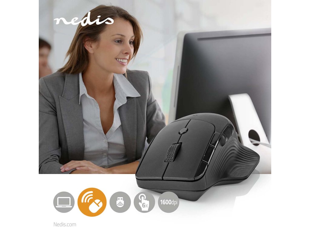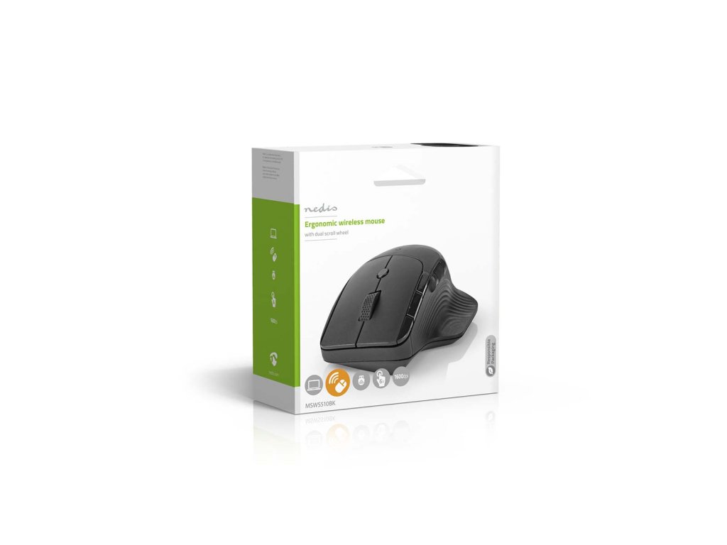 Nedis ergonomická bezdrátová optická myš byla navržena pro pohodlí při práci. Myš lze bezdrátově připojit k počítači nebo notebooku a je vybavena dvěma rolovacími kolečky pro horizontální i vertikální rolování. Je dodávána s USB nano přijímačem, který vám poskytuje naprostou bezdrátovou svobodu až do vzdálenosti 10 metrů. Nano přijímač lze uložit do myši. Myš disponuje vysoce přesným optickým snímačem s rozlišením až 1 600 dpi.