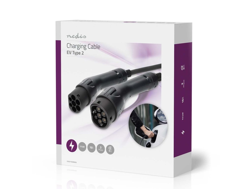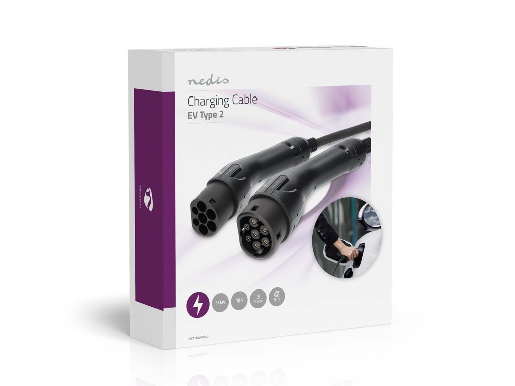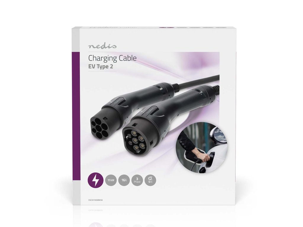 Nedis nabíjecí kabel pro elektromobily 400 V, Typ 2, 11 kW, 16 A, 3 fáze, 5 m (EVCA11KWBK50)