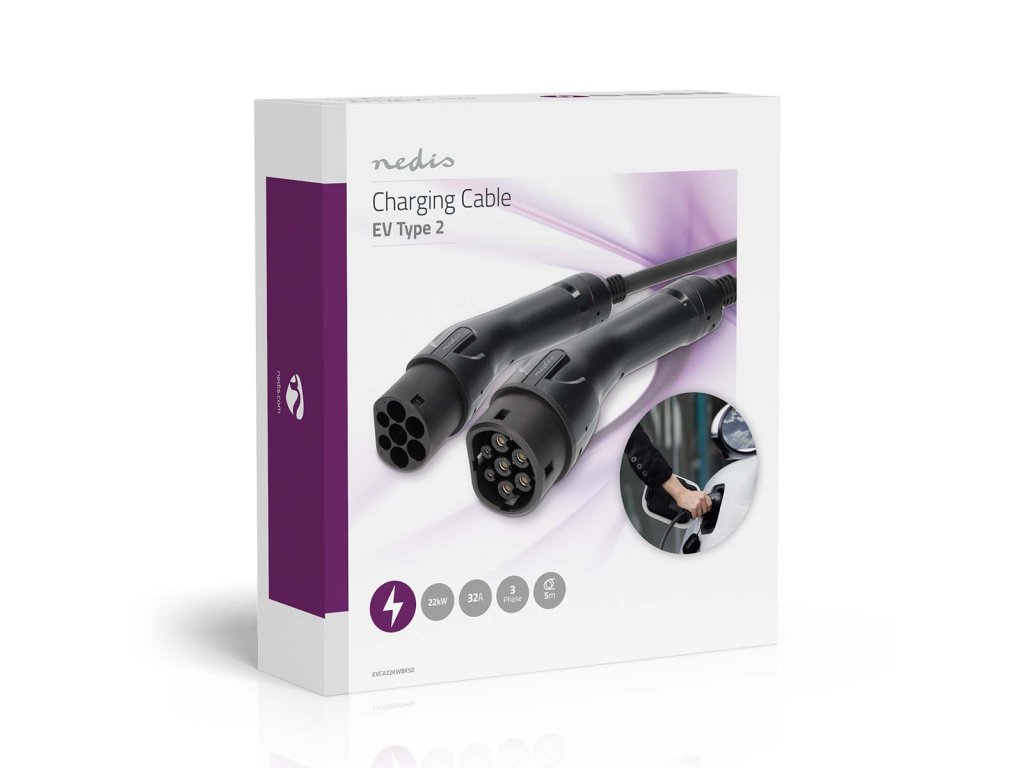Nedis nabíjecí kabel pro elektromobily 400 V, Typ 2, 22 kW, 32 A, 3 fáze, 5 m (EVCA22KWBK50)