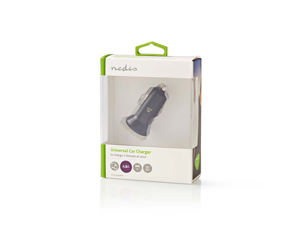 Nedis® výkonný duální USB napájecí CL adaptér/nabíječka do automobilu. Osazen 2 x 2.4 A USB porty pro nabíjení smartphonů, tabletů, navigací, MP3 přehrávačů, digitálních fotoaparátů a mnoha dalších zařízení s rozhraním USB. Adaptér lze zapojit do cigaretového konektoru automobilu s napětím palubní sítě 12 - 24 V.