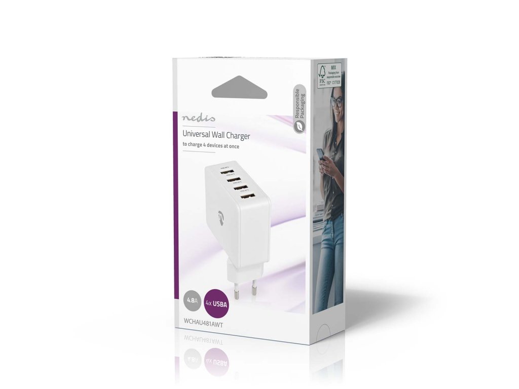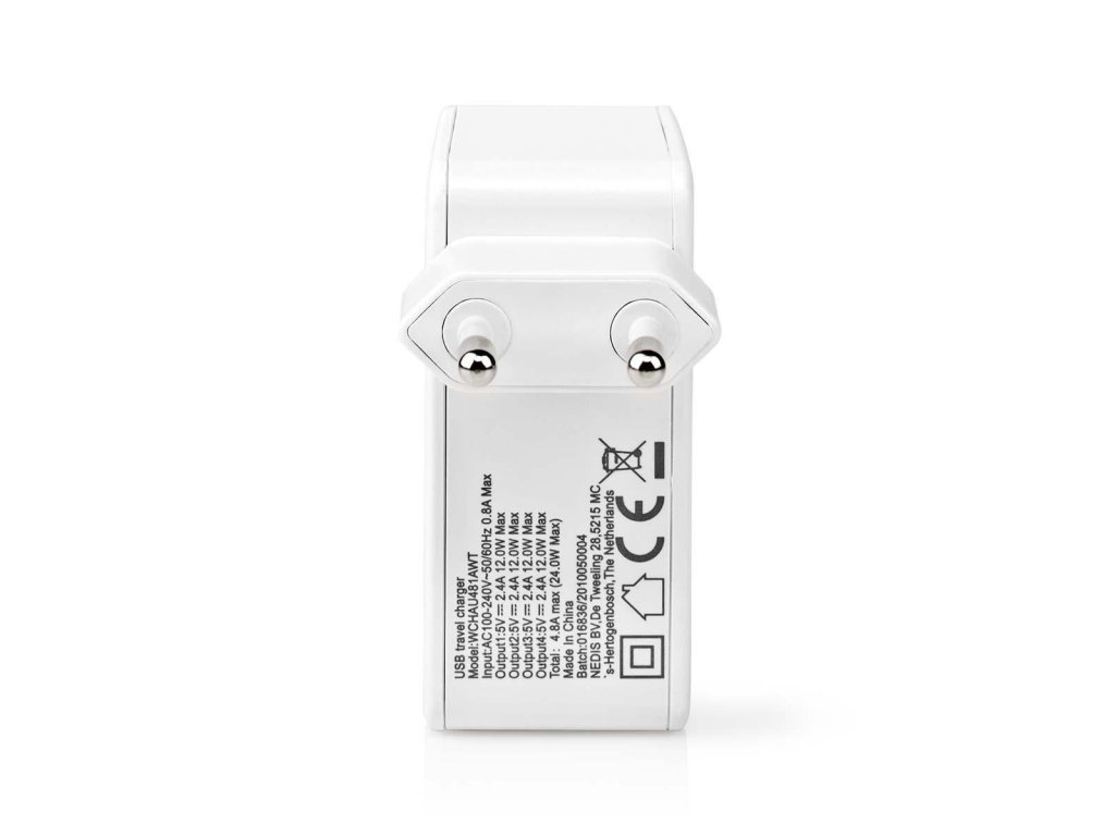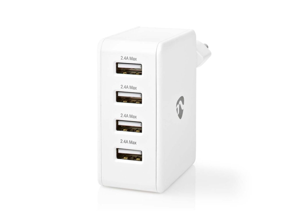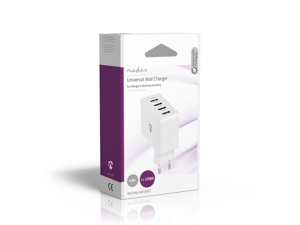 Nedis WCHAU481AWT výkonný USB 24 W napájecí adaptér 4 x 2.4 A, bílá