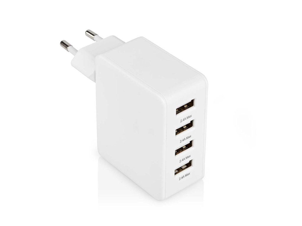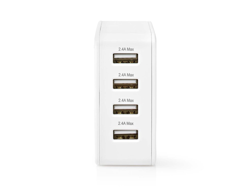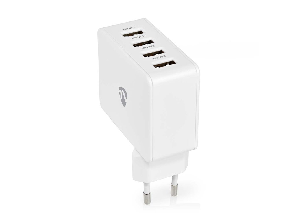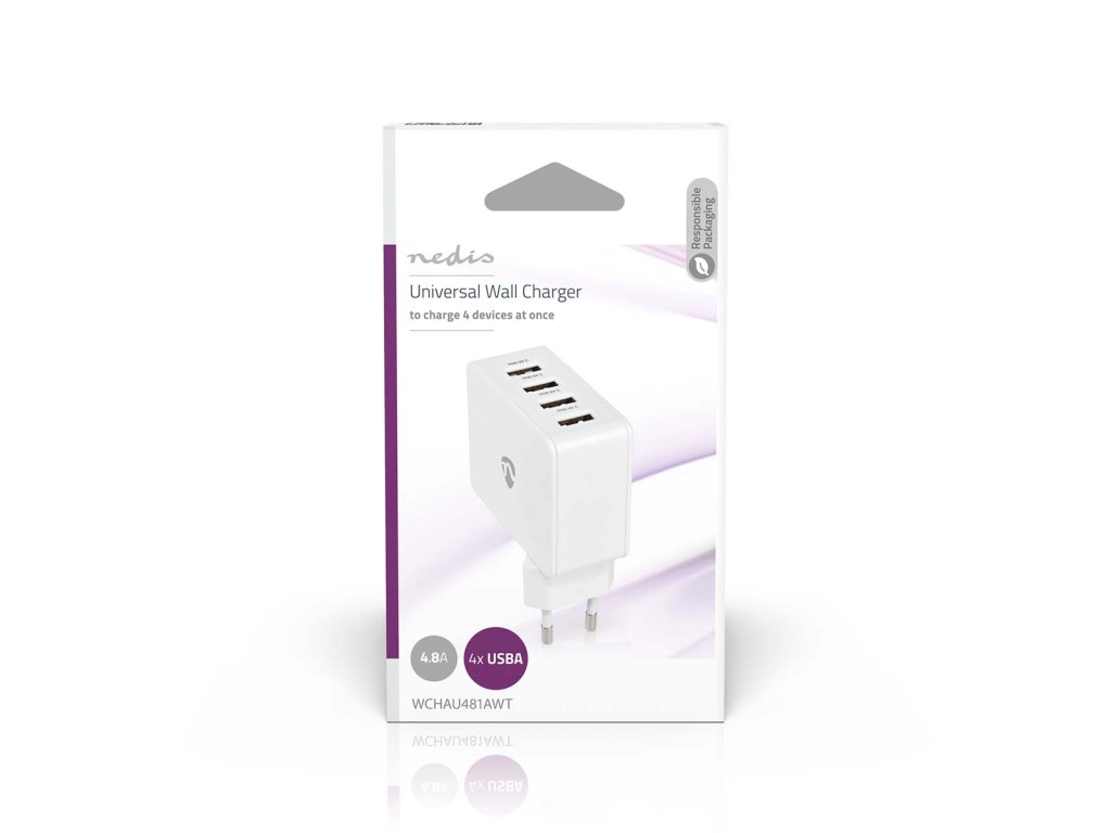 Nedis WCHAU481AWT výkonný USB 24 W napájecí adaptér 4 x 2.4 A, bílá