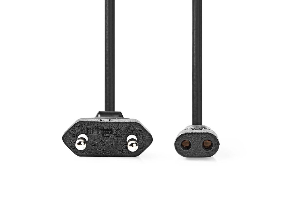 Nedis® značkový kroucený napájecí kabel s konektory EURO zástrčka - IEC320 C1 zásuvka (oválná). Vhodný např. pro napájení holicích strojků. Délka 2 m.