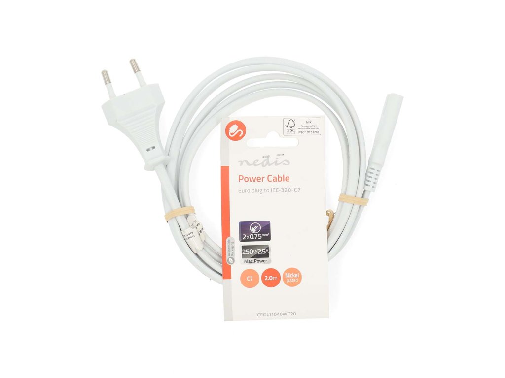 Nedis napájecí kabel zástrčka EURO - IEC-320-C7, 2 m, bílá (CEGL11040WT20)