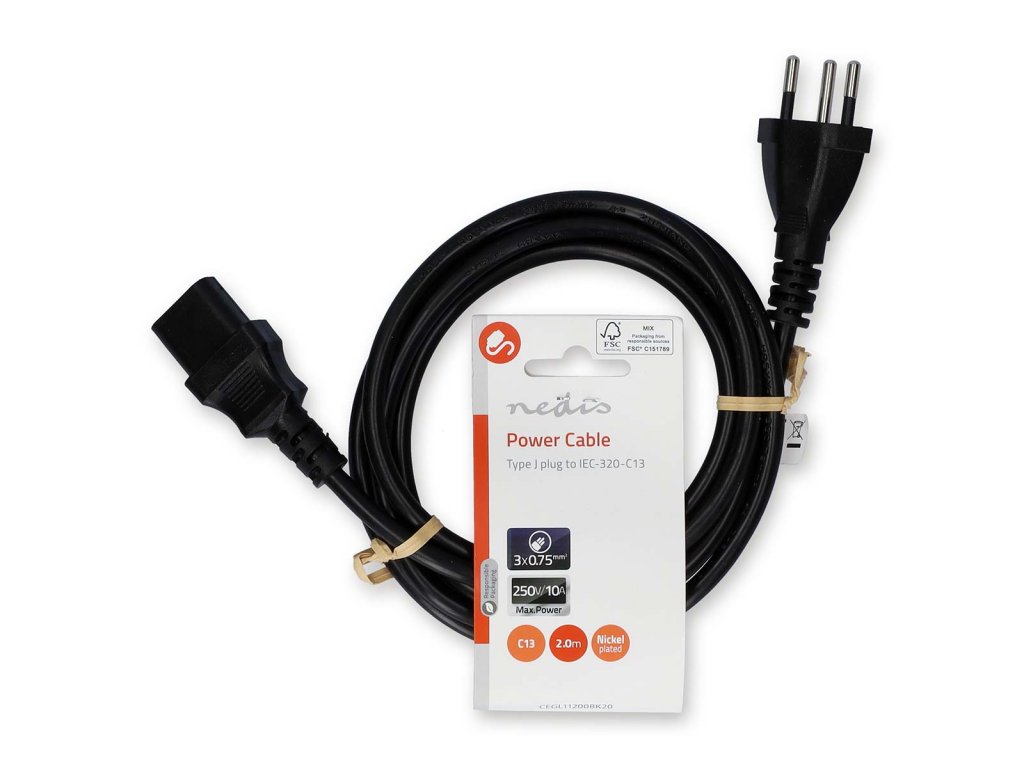 Nedis napájecí kabel zástrčka typ J (Švýcarsko) - IEC320-C13 černá, 2 m (CEGL11200BK20)